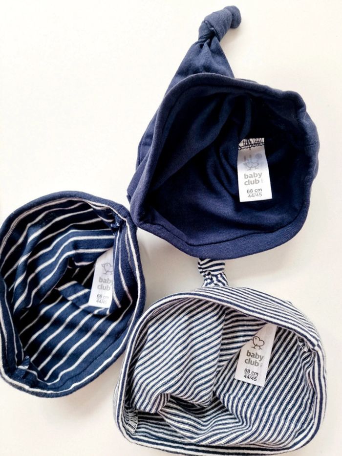 Baby Club - Lot de 3 bonnets - Marinière - Bleu marine - Neuf ! (6 mois) - photo numéro 3