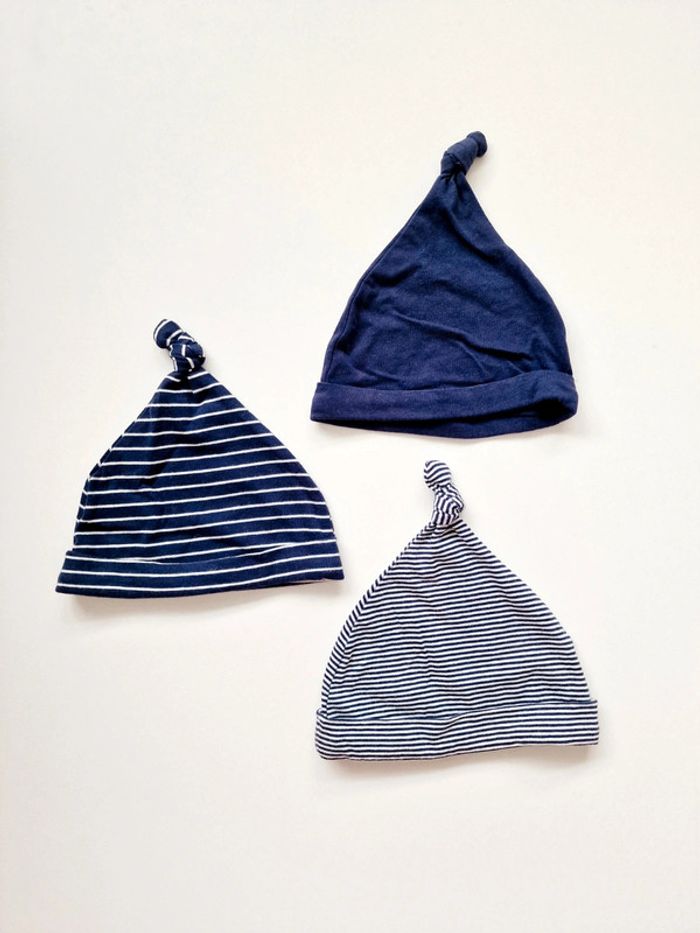 Baby Club - Lot de 3 bonnets - Marinière - Bleu marine - Neuf ! (6 mois) - photo numéro 2
