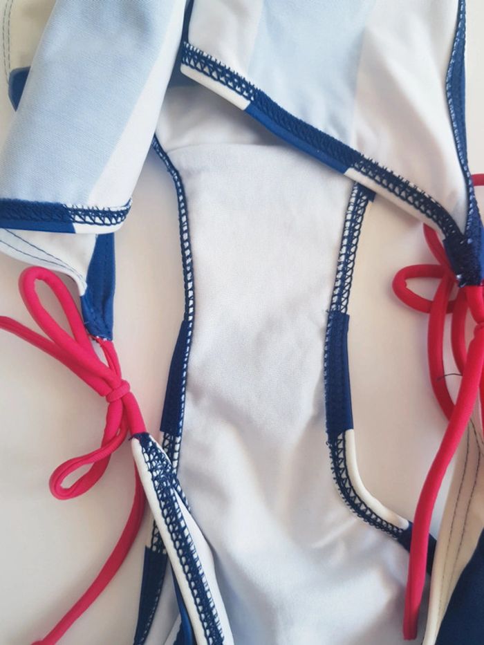 Tous mes articles U Collection : #ucollectionsev Tous mes maillots : #maillotsev Tous mes habits taille XXL : #xxlsev 🚨 Prix fixe Ensemble bikini triangle Marque : U COLLECTION Couleurs : bleu marine, écru et framboise Taille : 44 (haut + bas) État : très bon état 80% polyamide ; 20% élasthanne Doublure : 100% polyester Retrait sur place ou envoi.