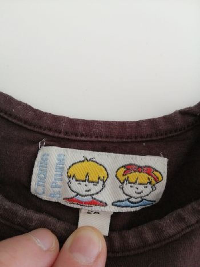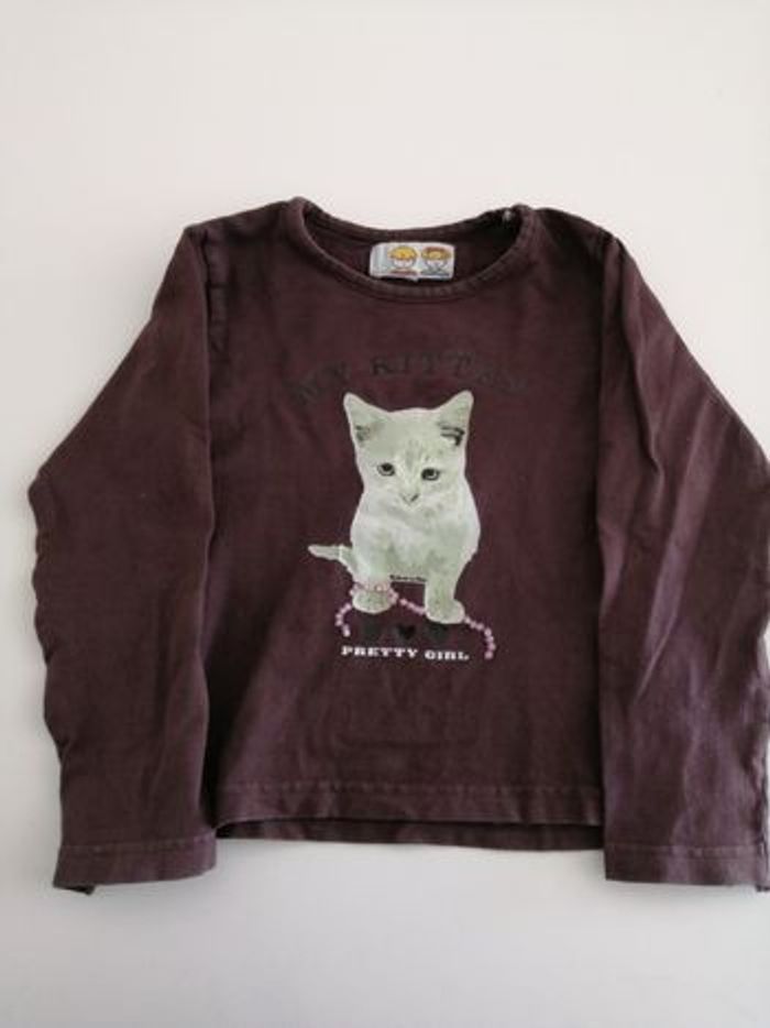 Lot de 2 hauts. Taille 2 ans. Pull blanc a une tache de feutre.