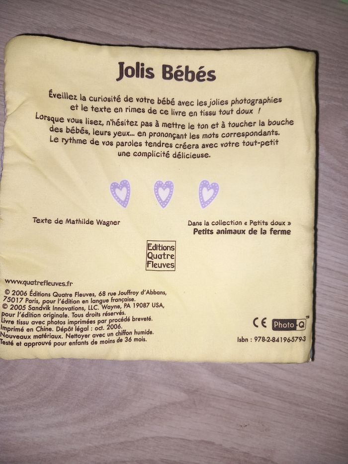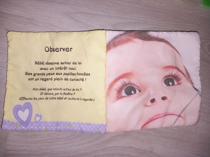 Livre en tissu bebe en TBE ma fille a adoré ! Beaucoup de gazouillis et d'éclats de rire en regardant ces photos de bebe ! TBE pas de tâches pas de trous