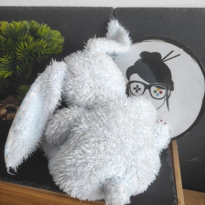 peluche plush bleu blanc neige lapin carreaux ajena billes  Poils - photo numéro 1