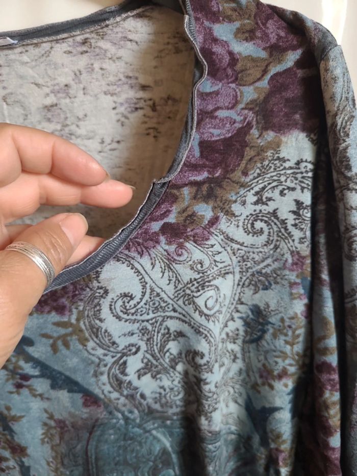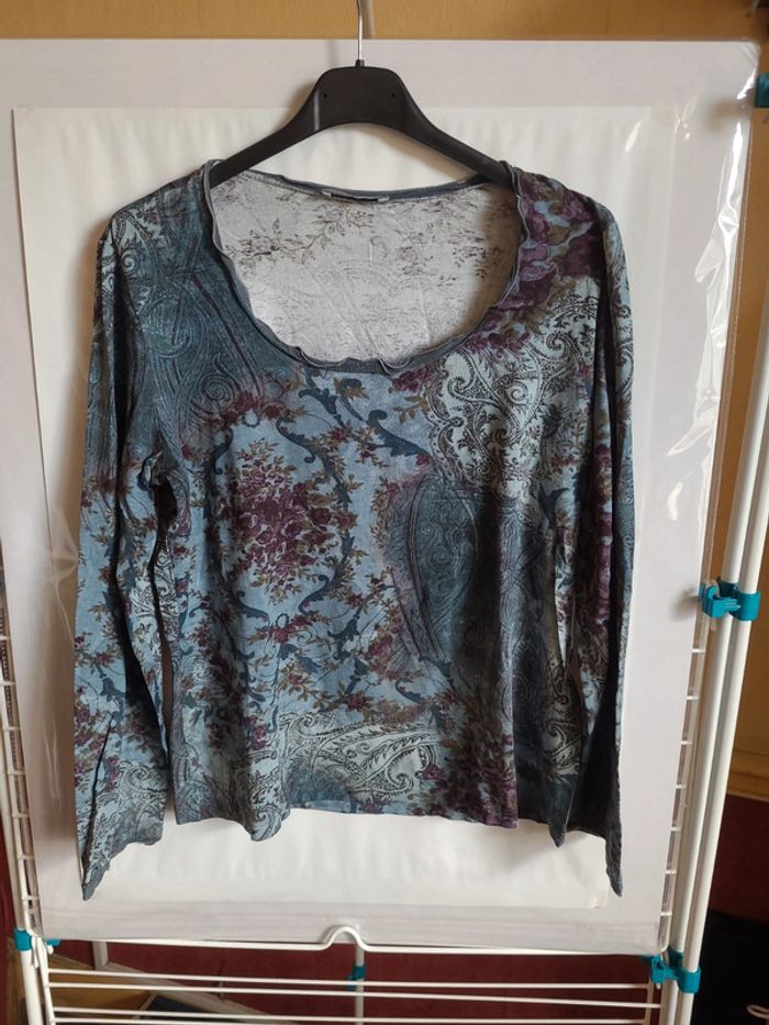 ⬇️mes autres annonces pour femme en taille 42 👉 #cg89femme42 😁 réductions activées des 2 articles ! une blouse imprimé avec col frisotté. Elle mesure 55 cm de longueur, 50 cm aux aisselles et 43 cm aux épaules. très bon état, taille 42, marque sym. #sym #blouse #tshirt #taille42