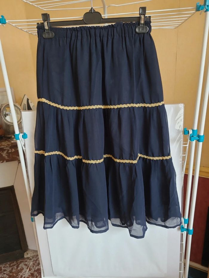 ⬇️mes autres annonces pour femme taille 38👉 #cg89femme38 😁 réductions activées des 2 articles ! une jupe mi-longue à volants avec liseré doré. Elle est entièrement doublée. Elle mesure 73 cm de longueur et 32 cm de taille (sans tirer l'élastique) très bon état #jupemilongue #jupeavolant #taille38