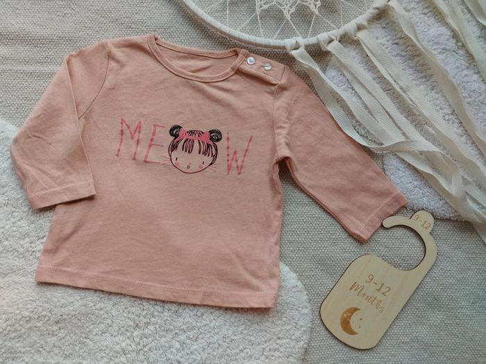🍒Article : petit t-shirt manches longues avec une petit chat marque "Meow" 🫐État : très bon état 🍉 Marque: Je ne sais pas 📏Taille : 9/12 mois 🪡Matière et mesures: (sur demande) 🚭Maison NON fumeur 🍓Pas de surprise caché, vous recevrez ce que vous commandez, tout les défauts son dans les photos ou dans le descriptif 📦Envoie rapide et soigné, je fais des envois 2 ou 3 fois par semaine, du mardi au samedi ❔Si vous avez des questions n'hésitez pas à les poser je répondrai dans les plus brefs délais 🧺Tout les vêtements sont lavés, sèches a l'aire libre pas de sèche linge, repassé, puis stocke a l'abri de l'humidité. Pour trouver plus d'articles dans cette catégorie /taille cliquez sur le lien ci-dessous #ecirdney_9mois #ecirdney_12mois