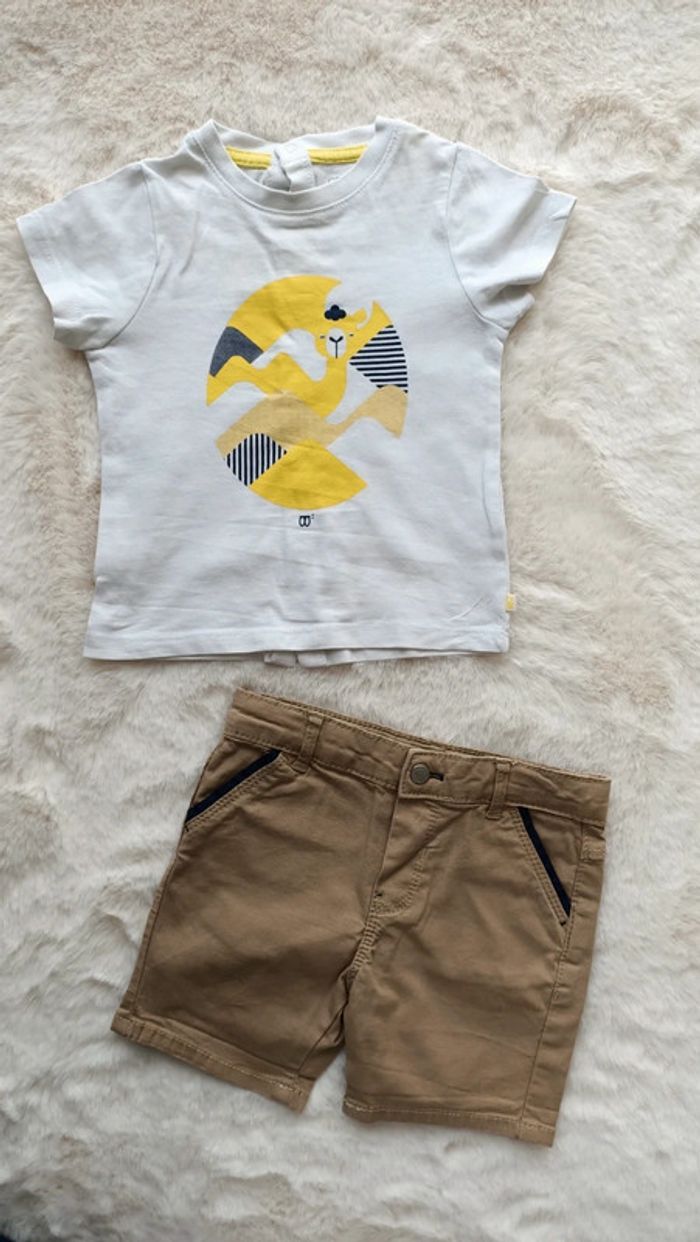 #melbien20_garçon_6mois Ensemble tee-shirt et short Obaibi 6 mois Excellent état