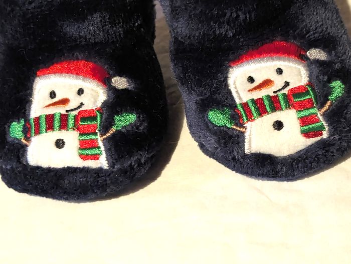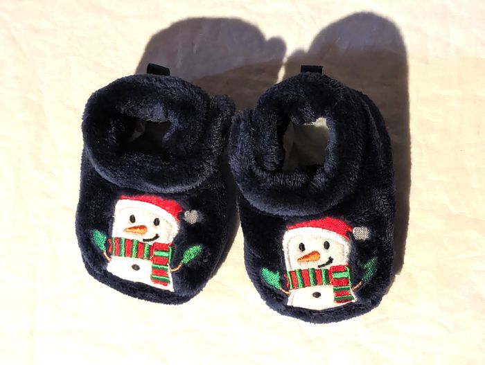 Chaussons Bleus Bonhomme Neige Bonnet Echarpe Fermeture Scratch Noël Accessoires Petits Enfants Bébé - photo numéro 5