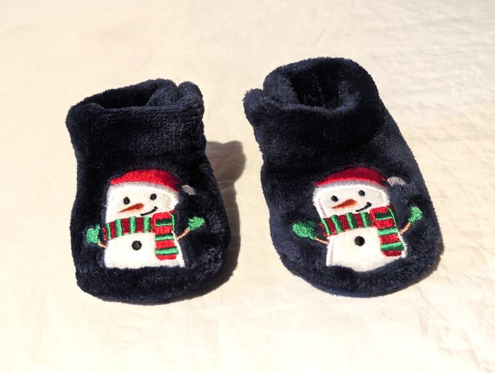 Chaussons Bleus Bonhomme Neige Bonnet Echarpe Fermeture Scratch Noël Accessoires Petits Enfants Bébé - photo numéro 2