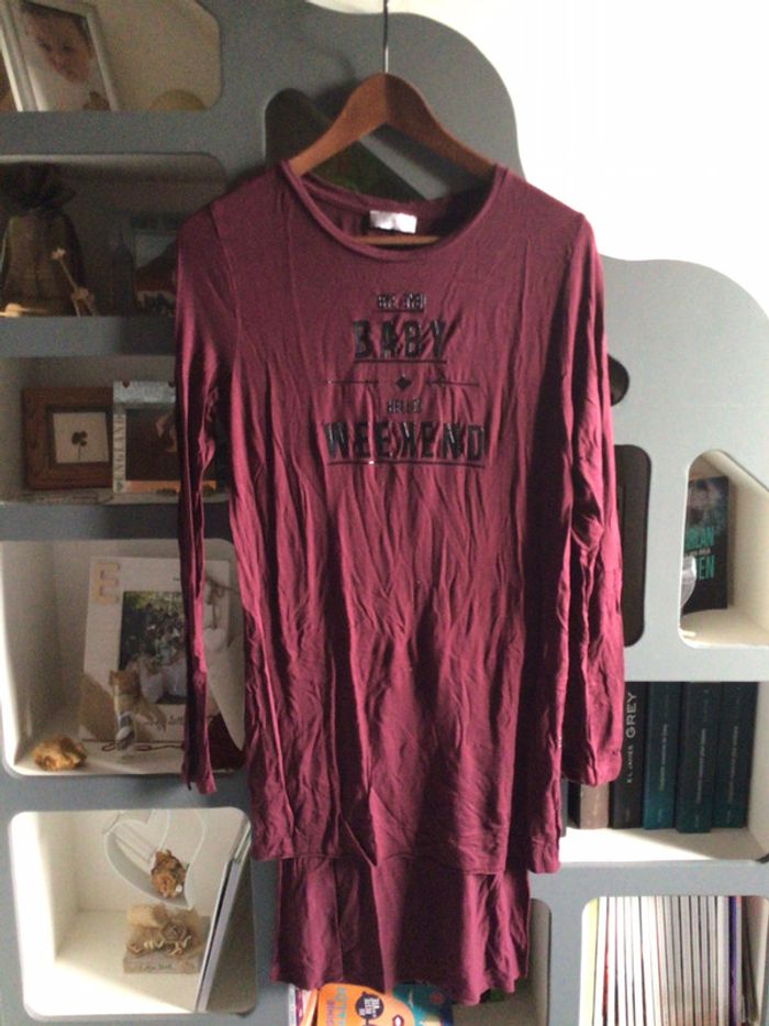 tunique Bordeaux en jersey (stretch) plus longue derrière idéal pour un temps cocooning avec un legging étiquette coupée mais c’est un 40 maison sans animaux et non fumeur #tunique #tuniquefemme #cachecache #cocooning