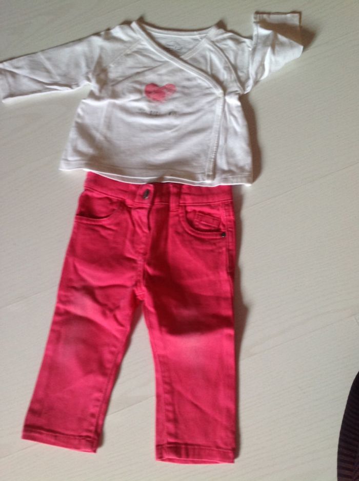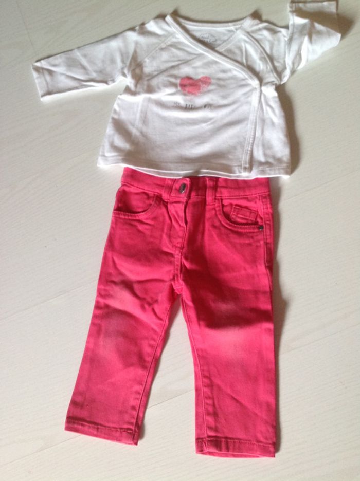 Ensemble tee-shirt manches longues et jean rose Tee shirt: cache cœur manches longues avec pressions pour faciliter l'habillage de bébé 👶, crème et rose #tao #tapealoeil Jean: jean rose effet délavé used neuf, taille ajustable #dpam #dupareilaumeme Maison sans animaux et non fumeur #ensemble #ensemble6mois #jean #jeanrose #cachecoeur