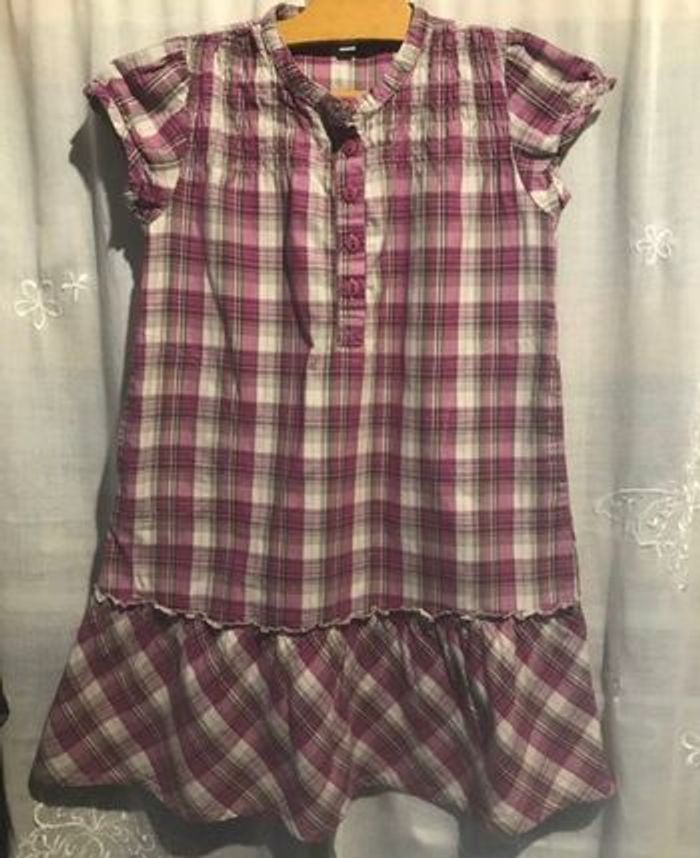 Robe manches courtes, 2 poches 100% coton écossais beige taupe et fuschia ( violine) taille 8 ans 126 cm Vert Baudet