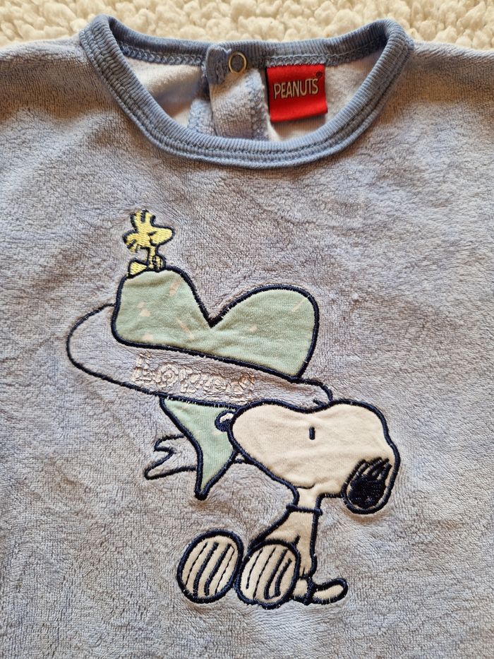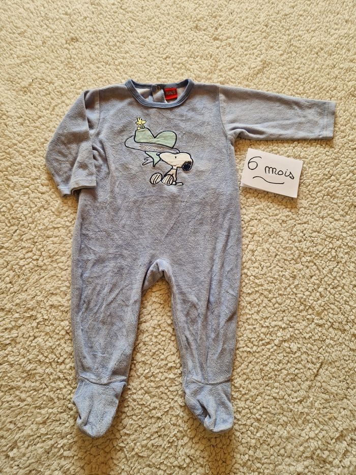 Pyjama velours peanuts 6 mois Bleu motif snoopy Ouverture dos Très bon état