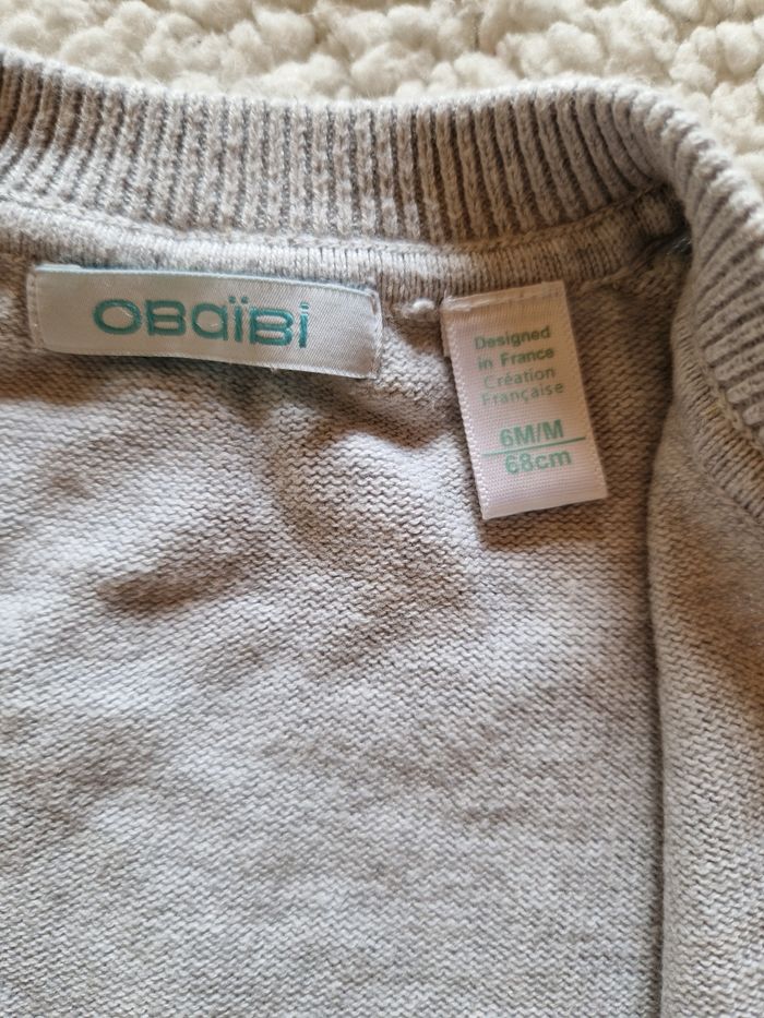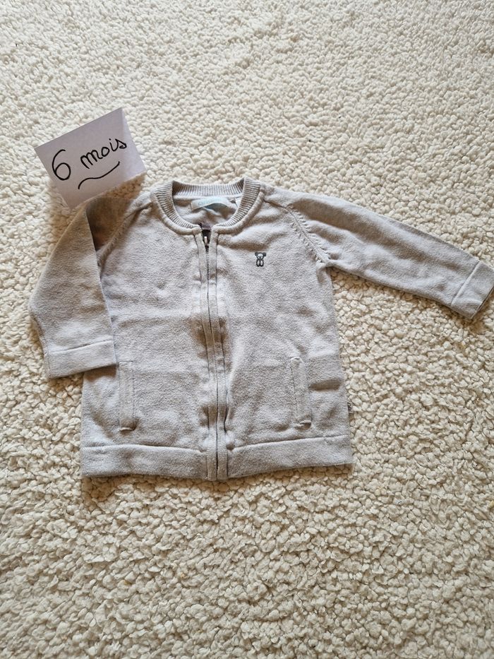 Gilet zippé obaïbi 6 mois Gris Bon état : quelques bouloches