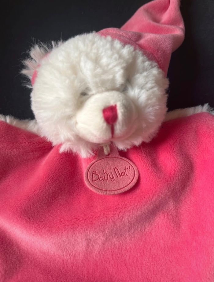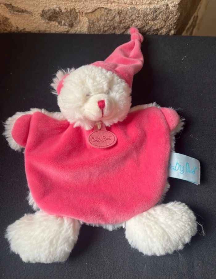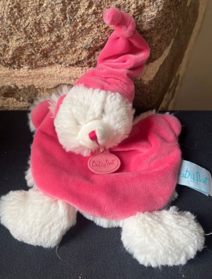 Doudou plat ours Baby Nat Calins rose  18 cm - photo numéro 1
