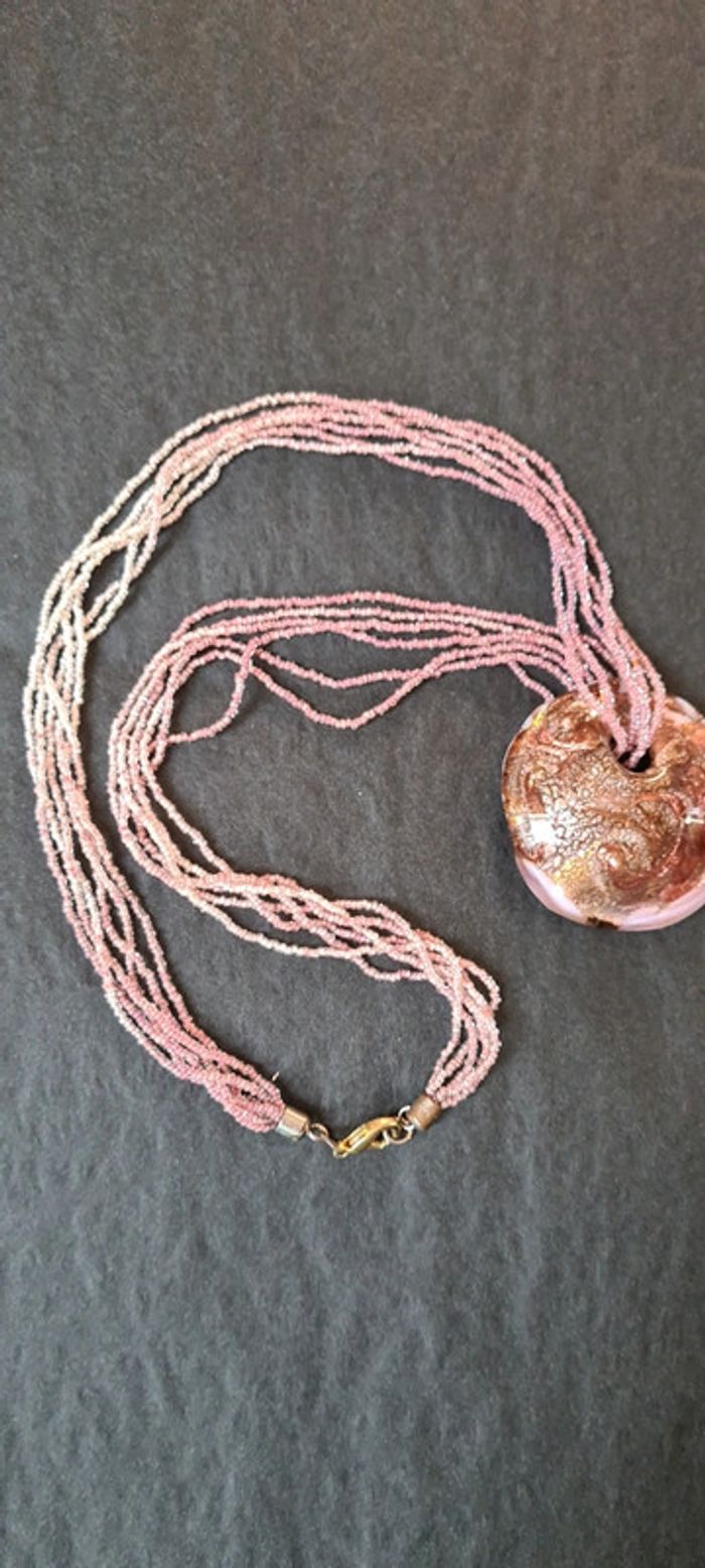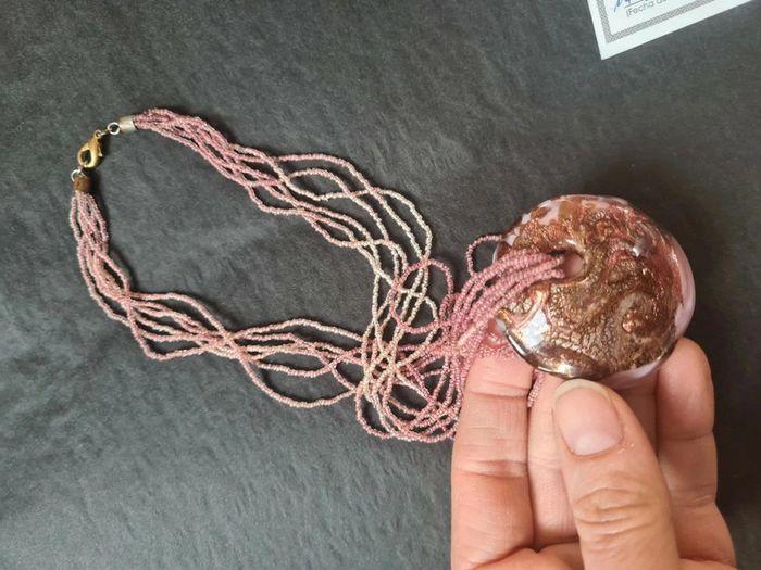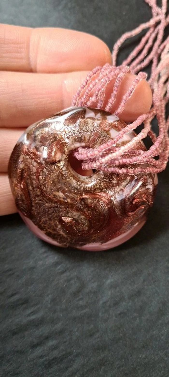Pendentif perles et coquillage façon murano Fermoir légèrement décoloré