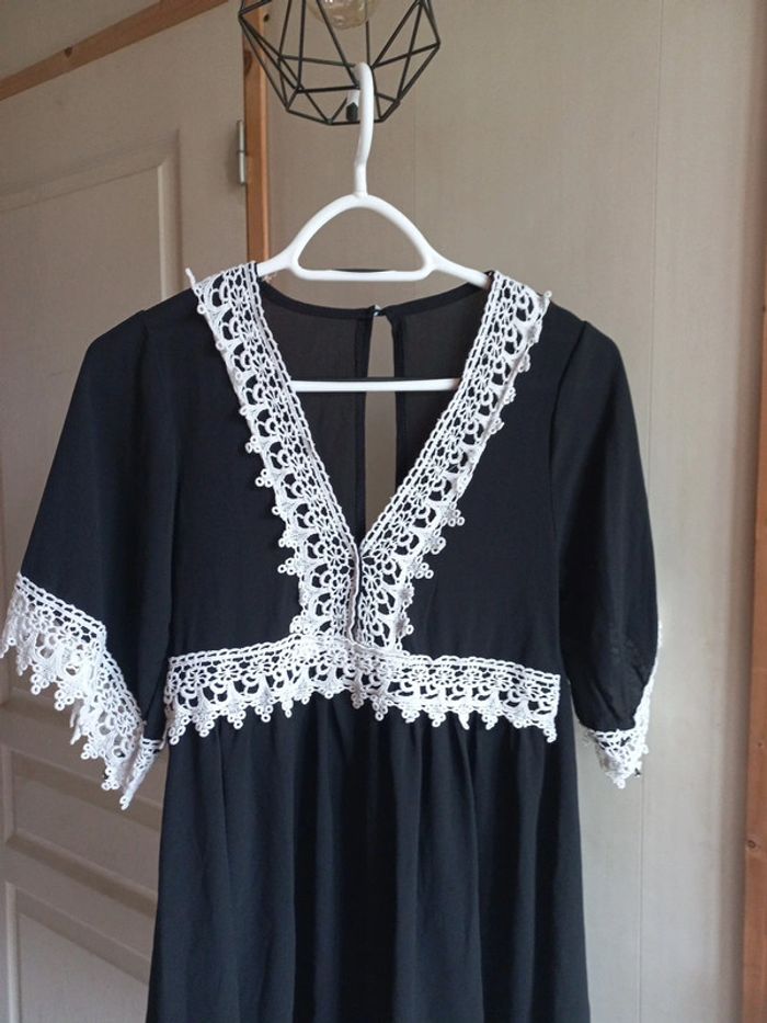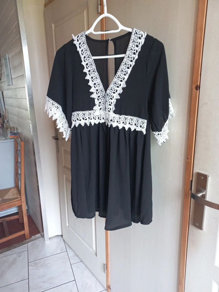 Robe courte noire et blanche Légère Taille unique convient au 36 au 40 Fluide Peut servir de tunique ou de robe de plage
