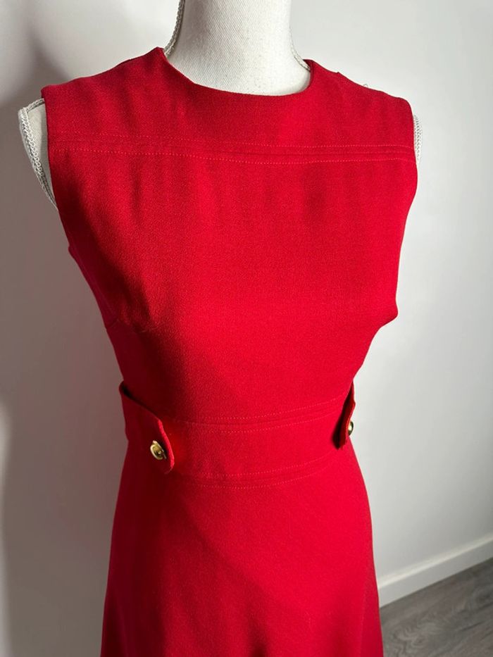 Robe cintrée - Excellent état - Taille 36/38 équivalent S/M - Couleur rouge - Long zip dans le dos - Fabrication française 🇫🇷 - Doublure intérieure - Effet ceinture avec deux boutons dorés - Vintage, années 80’ - Windy Metz - Pas d’étiquette de matière Dimensions: - 42 à 44cm niveau aisselle - 96cm de long
