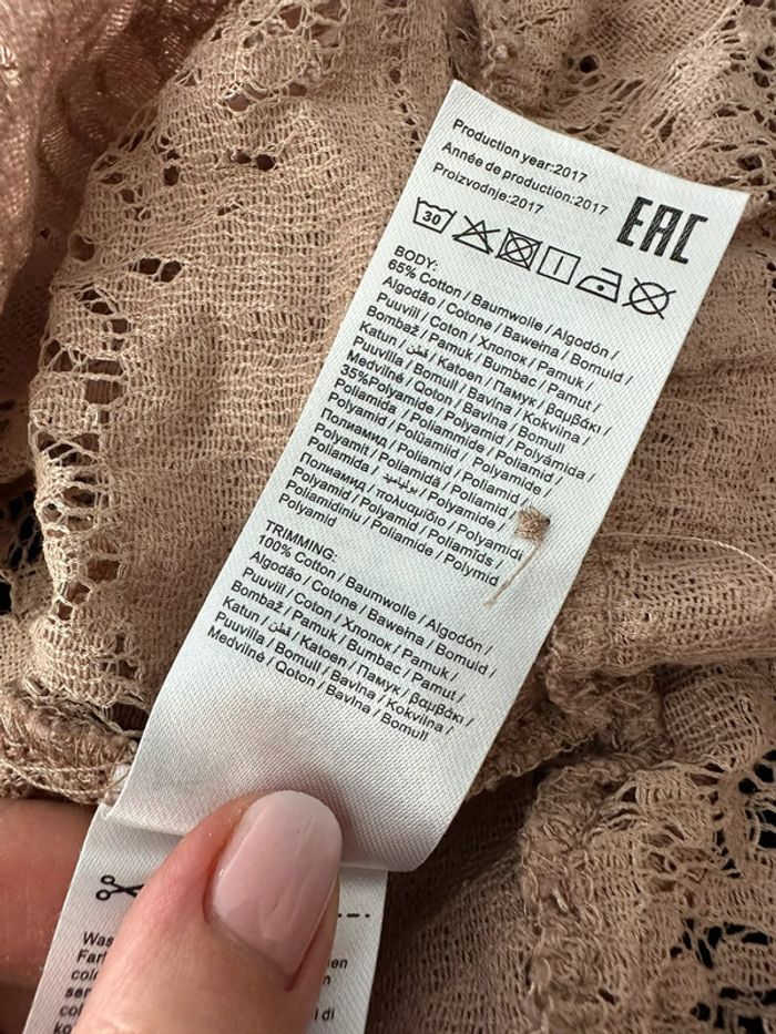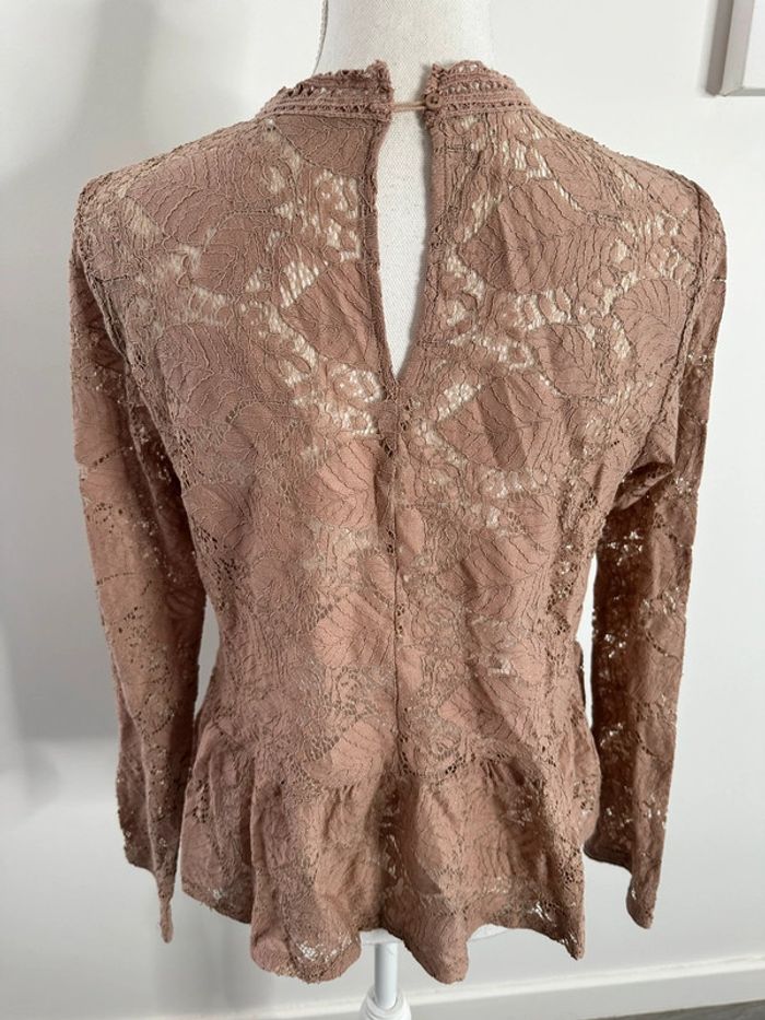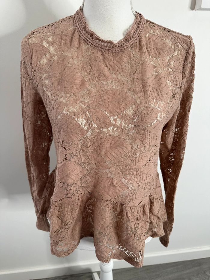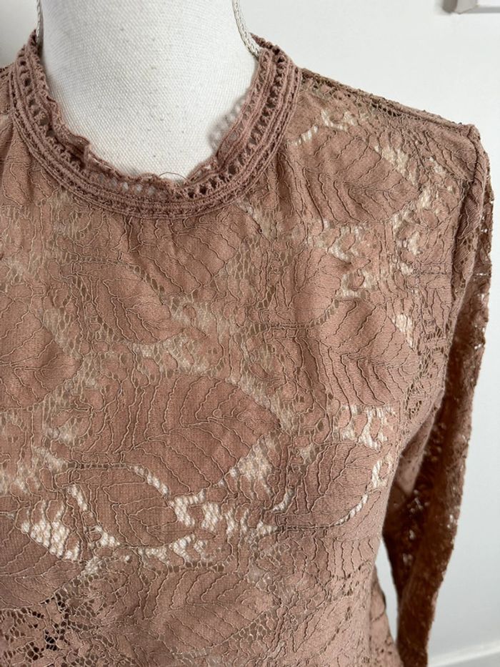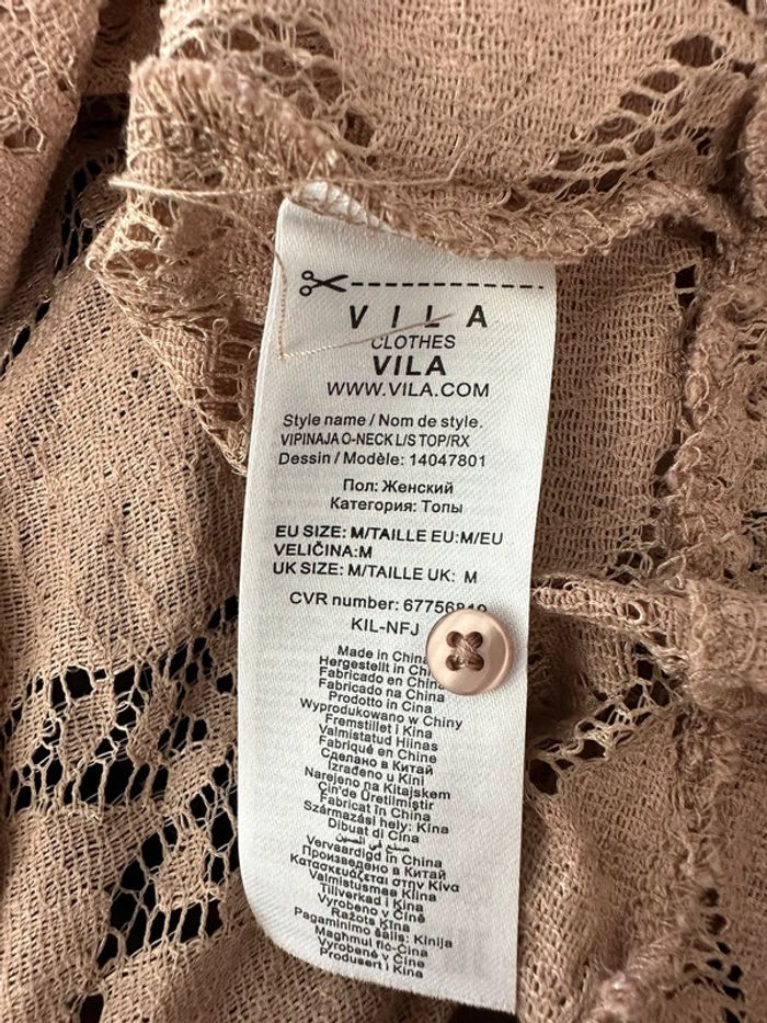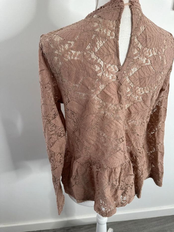 Blouse à manches longues en dentelle beige nude Vila T38 M