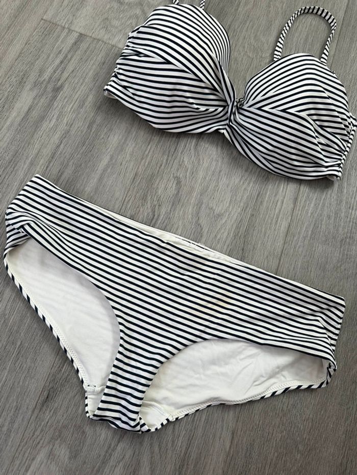 Maillot de bain marinière deux pièces blanc et bleu marine T38/40 M/L - photo numéro 1