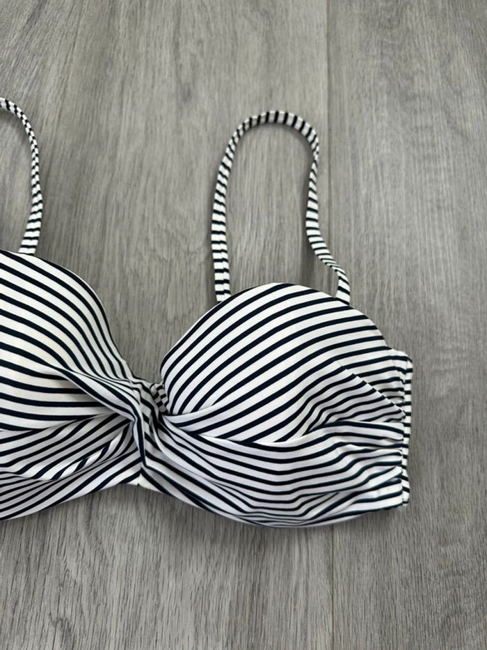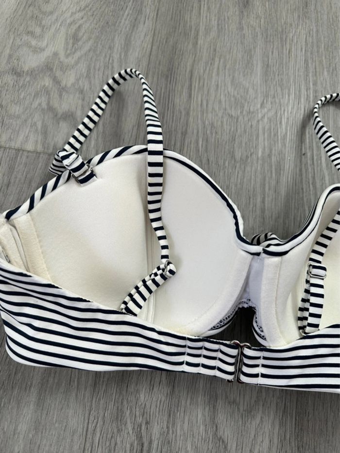Maillot de bain - Excellent état - Taille 38/40 équivalent M/L - Blanc et bleu marine - À rayures, marinière - Deux pièces - Bretelles réglables et amovibles - Doublure intérieure - Plus d’étiquette de taille ni de matière