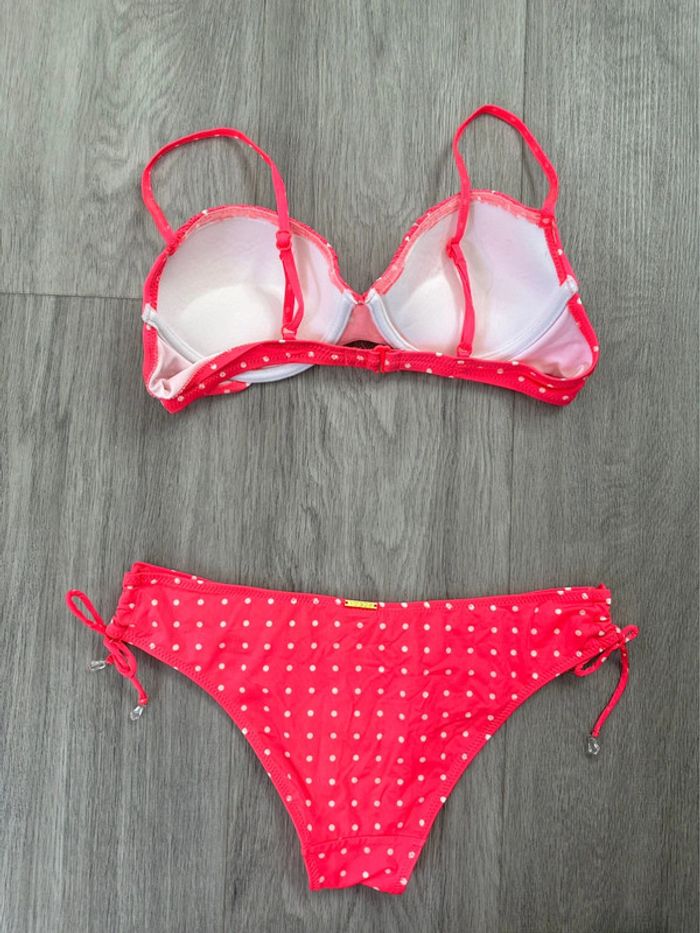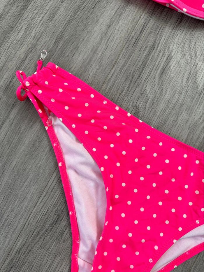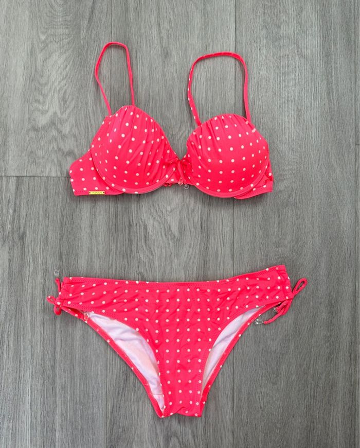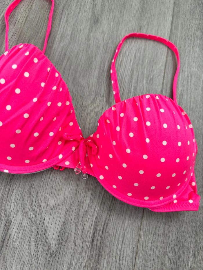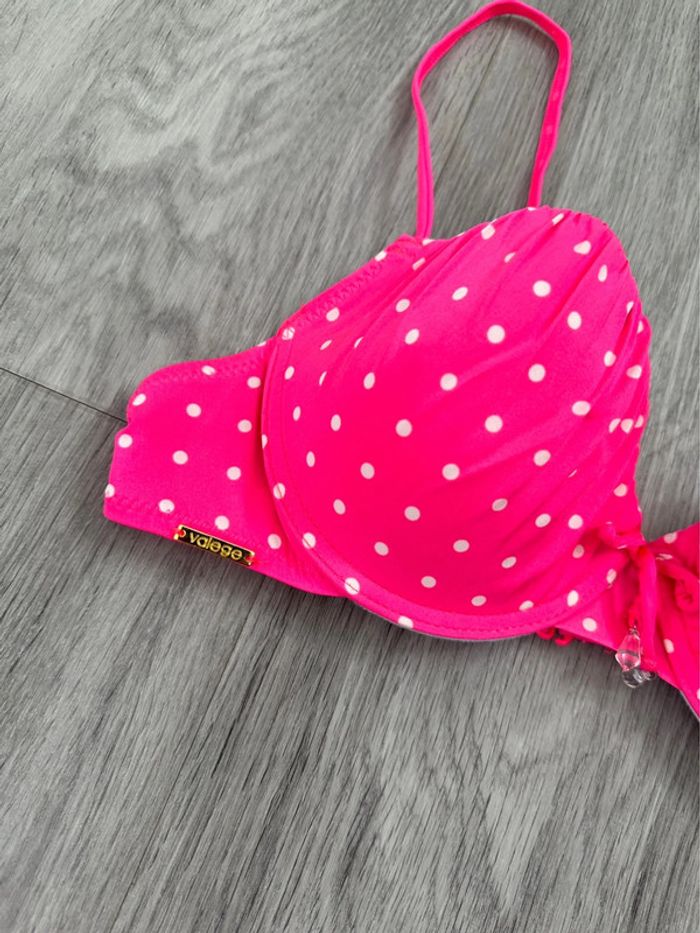 Maillot de bain push up deux pièces rose fluo à pois Valege T36 S