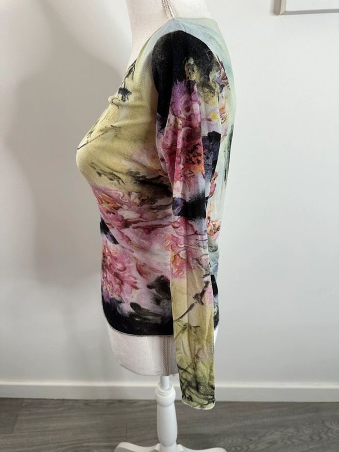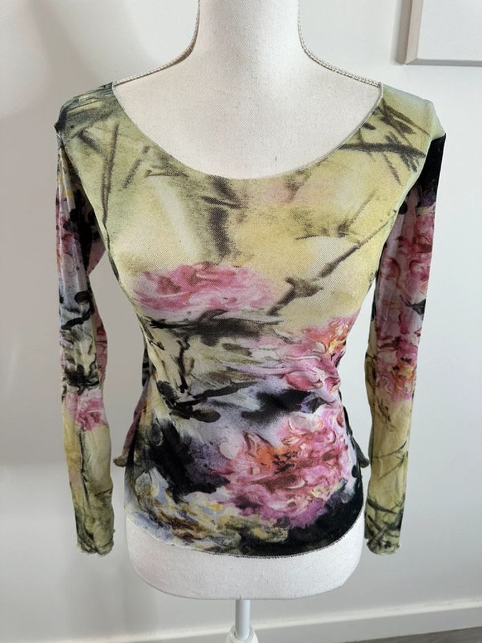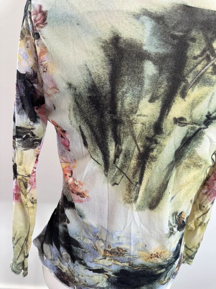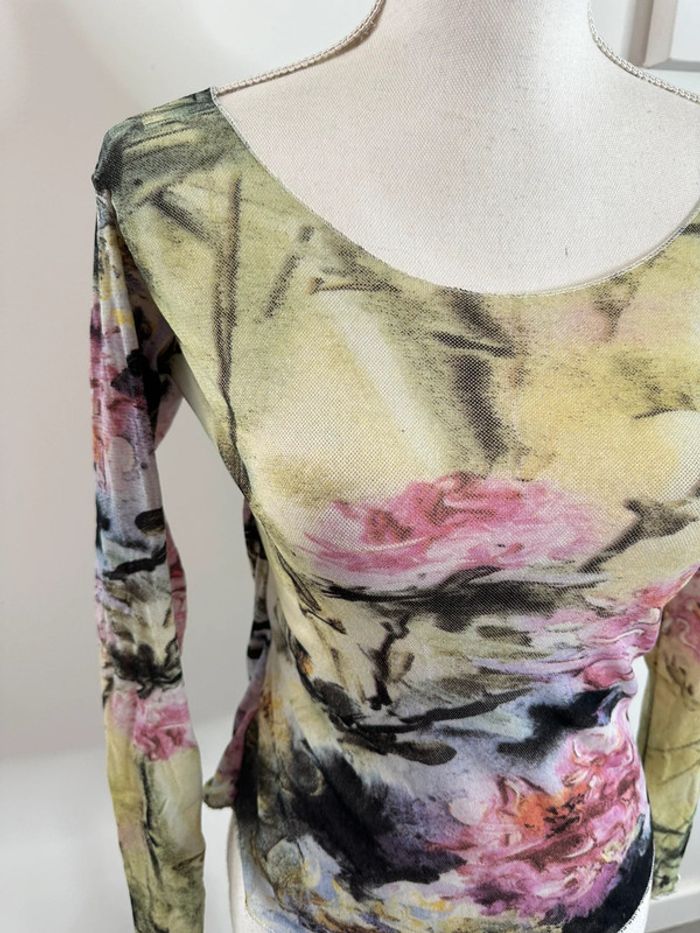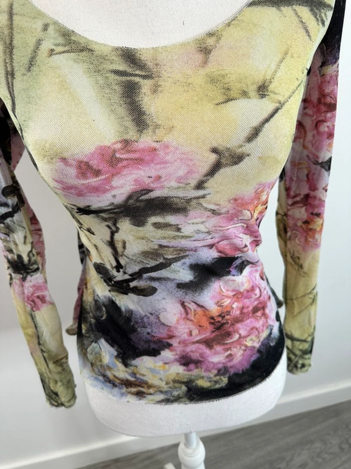 Top en mesh - Excellent état - Taille 38 équivalent M - Style Y2K, 2YK - Imprimés fleurs - Vert et rose - Plus d’étiquette de taille ni de matière