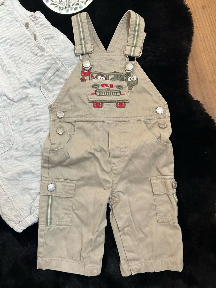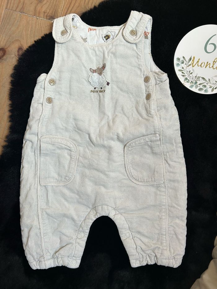 Lot 2 salopettes garçon 6 mois 1 salopette pantalon en jean beige Kimbaloo, et 1 salopette crème molletonnée, épaisse Kimbaloo Le tout est en très bon état 👍