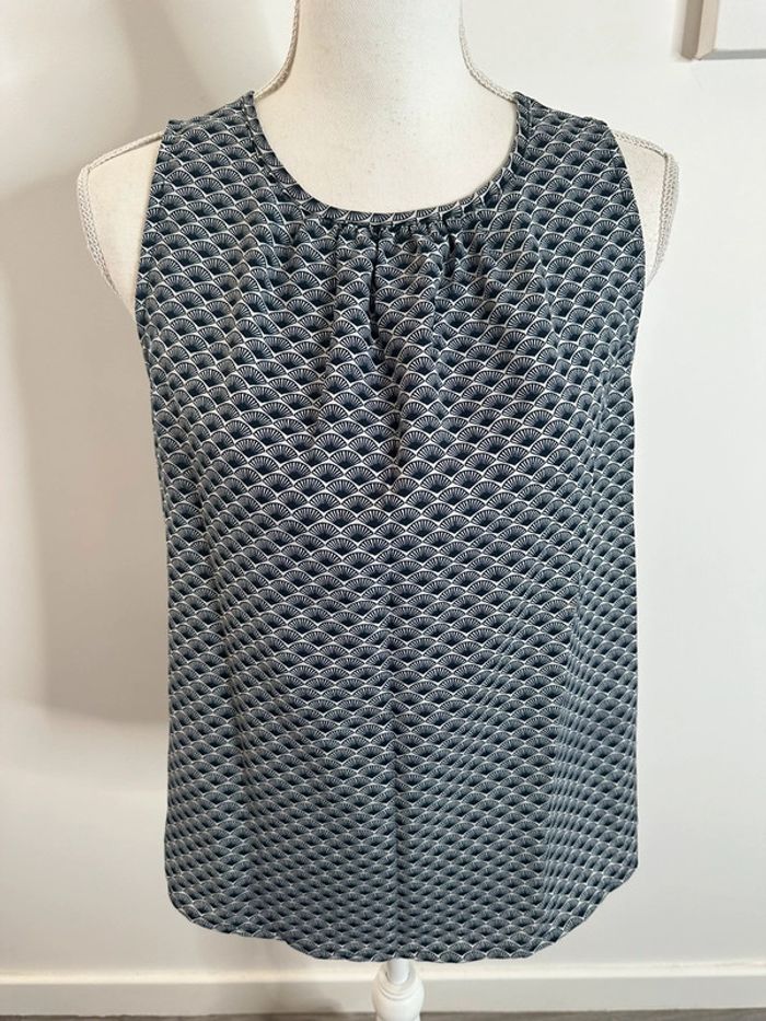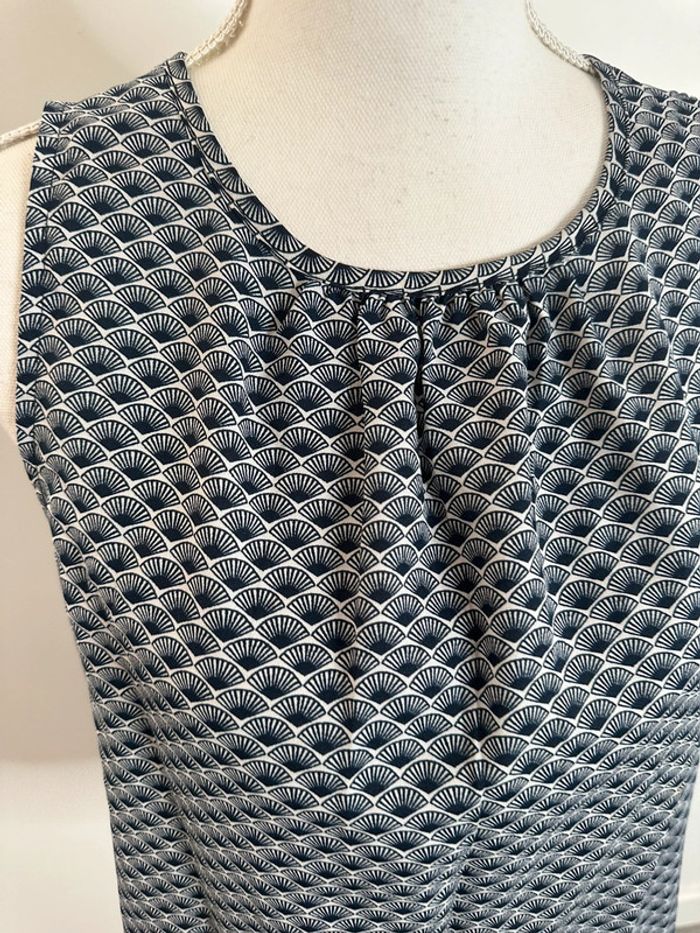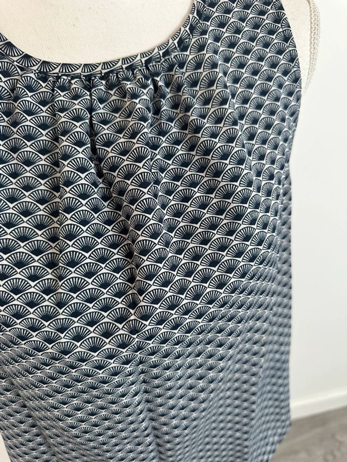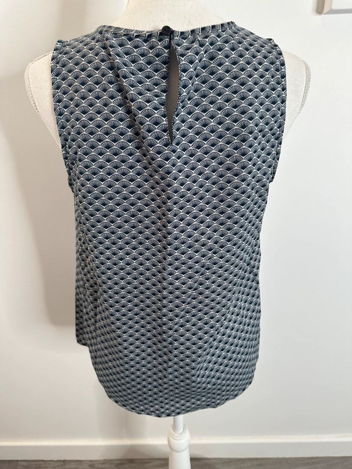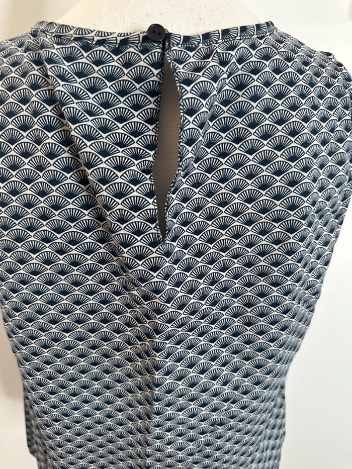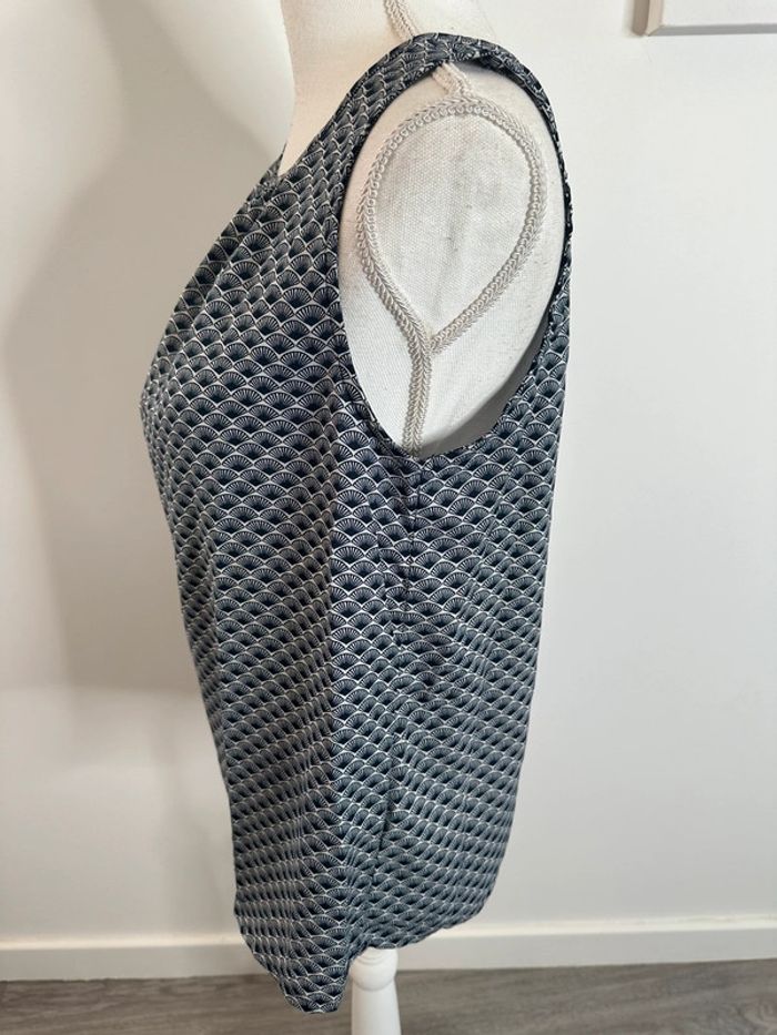 Débardeur - Excellent état - Taille 36 équivalent S - Bleue marine et blanche - Marque Kiabi - Tissus fluide - Imprimés coquillages - 100% Polyester