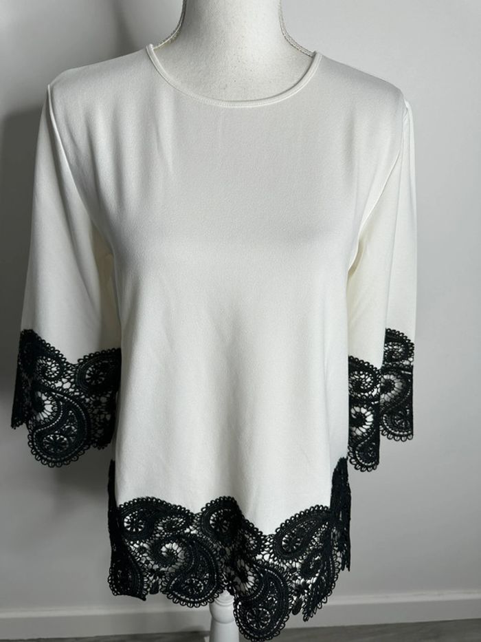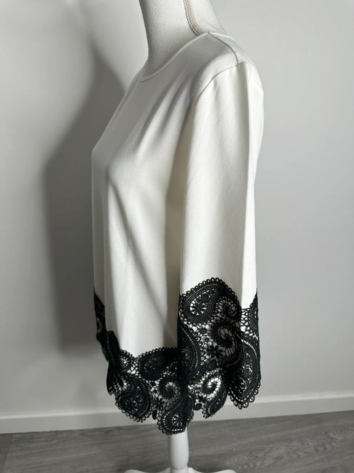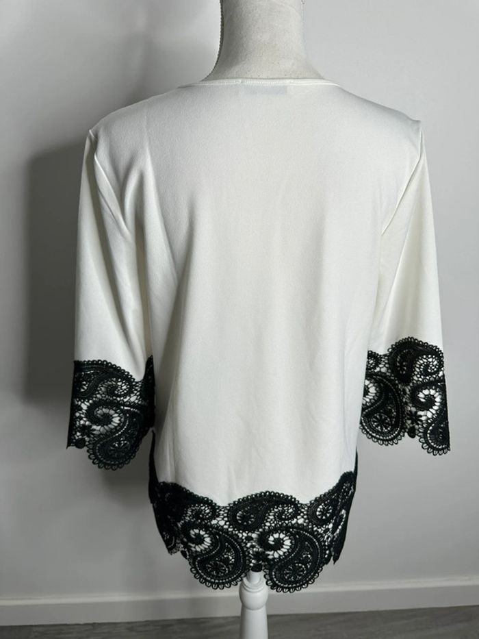 Blouse - Excellent état - Taille 40 équivalent L - Marque Reserved - Dentelle sur le bas et les manches - Blanche et noire - Tissus fluide - Plus d’étiquette de matière