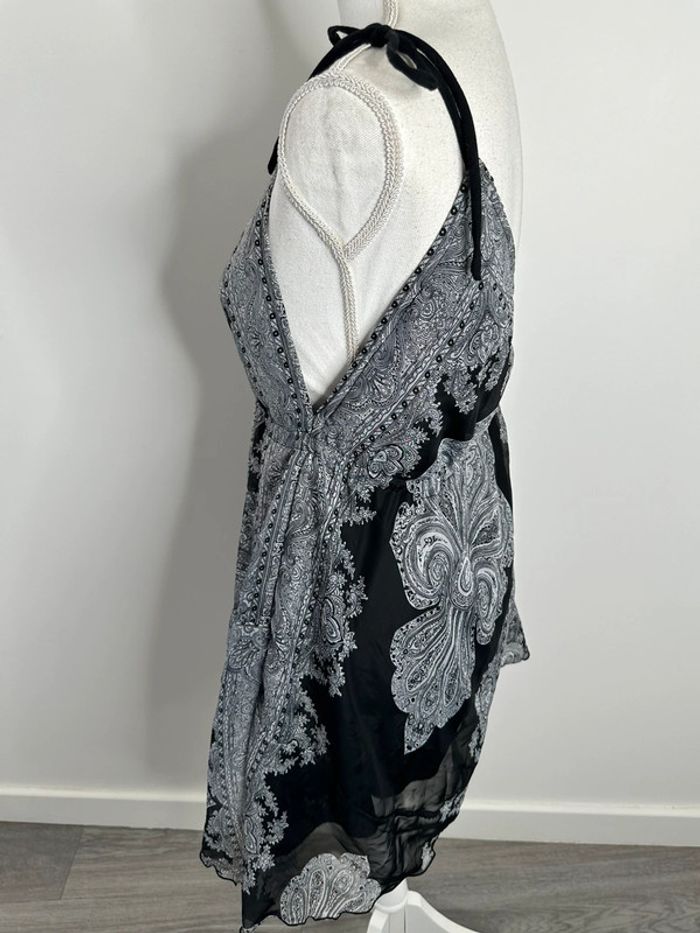 Débardeur foulard asymétrique noir et blanc Paisley Y2K T38 M - photo numéro 6