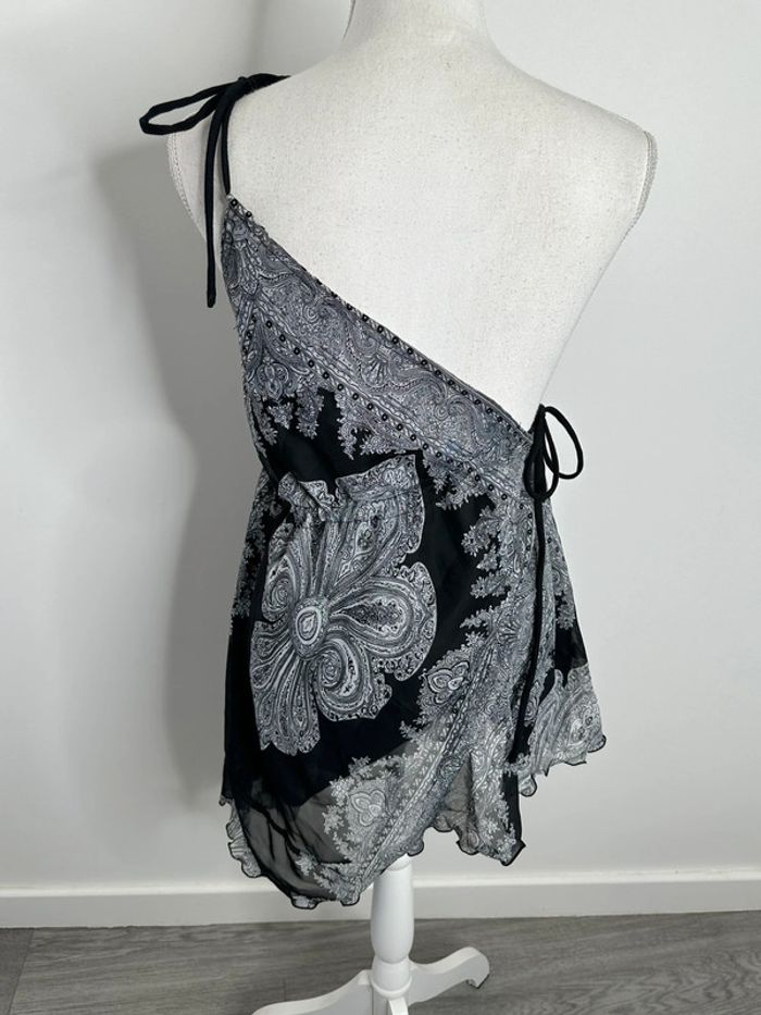 Débardeur foulard asymétrique noir et blanc Paisley Y2K T38 M - photo numéro 5
