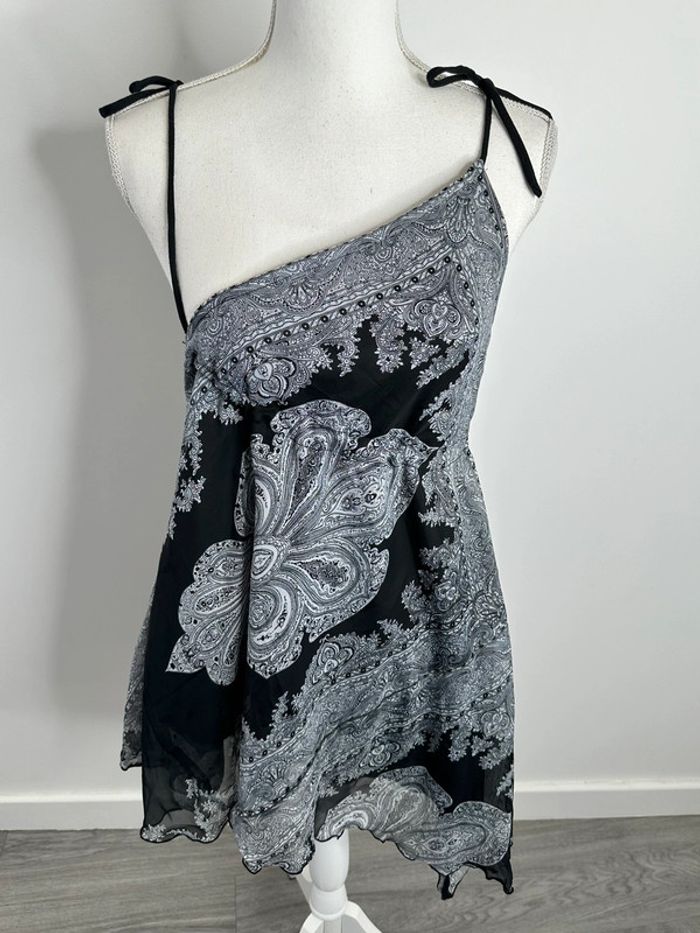 Débardeur foulard asymétrique noir et blanc Paisley Y2K T38 M - photo numéro 1
