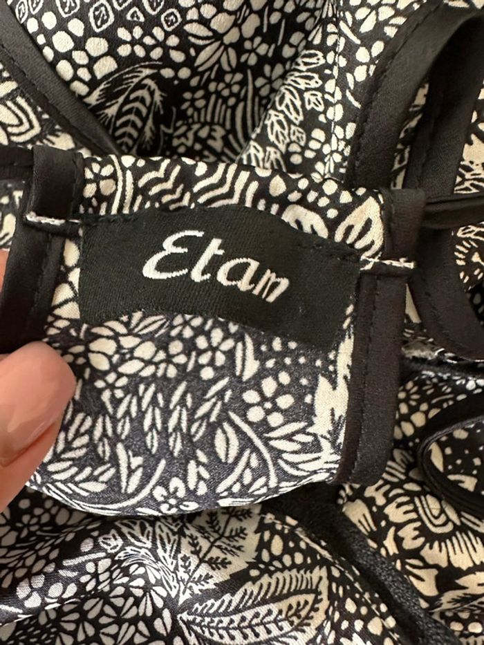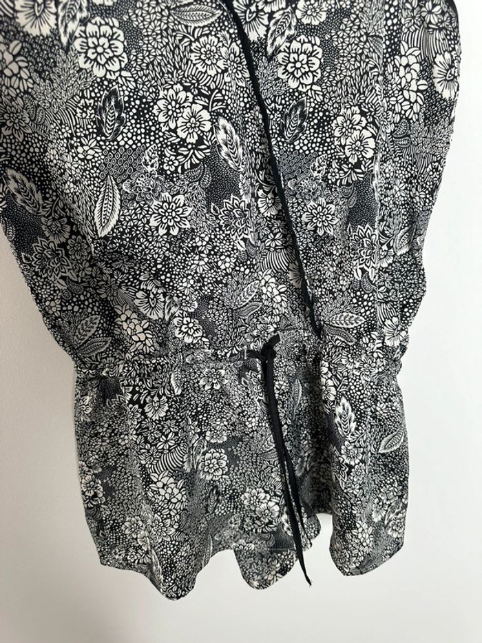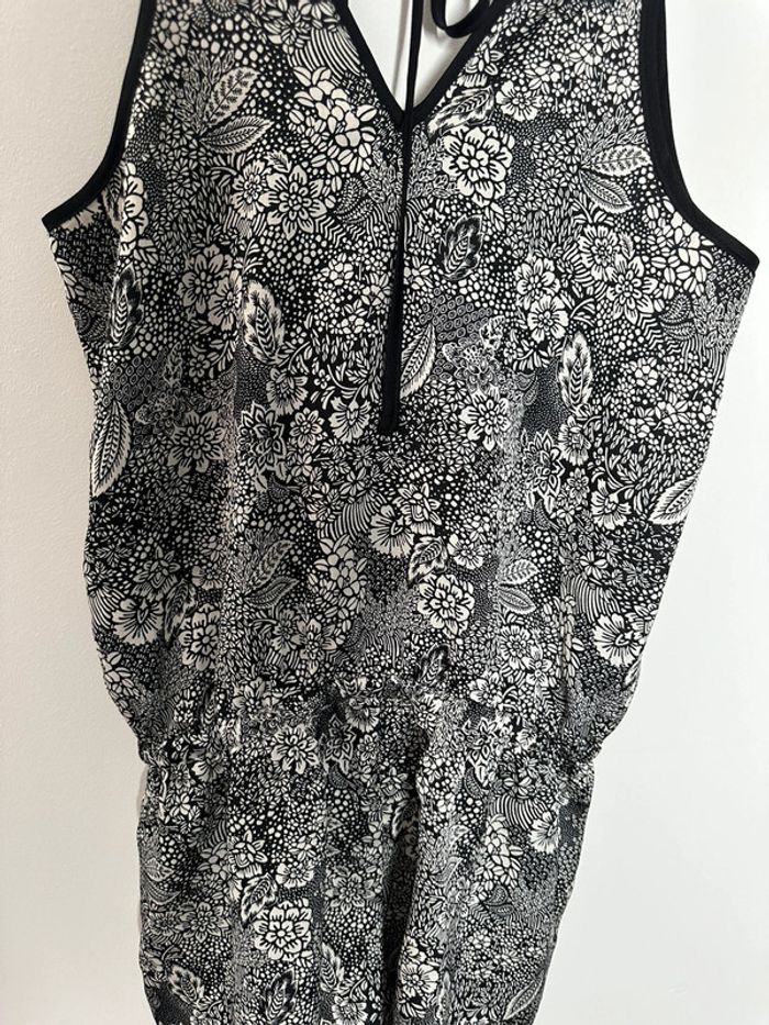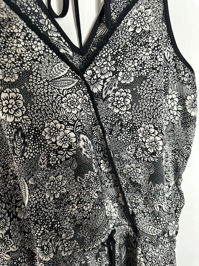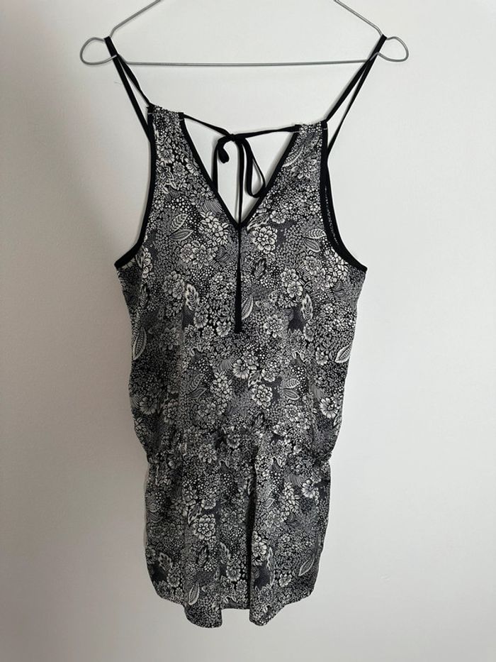 Combishort - Excellent état - Taille 36 équivalent S - Marque Etam - Noire et blanche - Lien pour ajuster la taille - À nouer dans le dos - Imprimés fleurs - 100% Coton