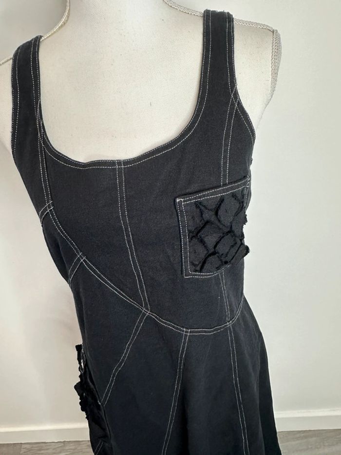 Robe en lin noire et blanche Vintage T42 XL - photo numéro 7