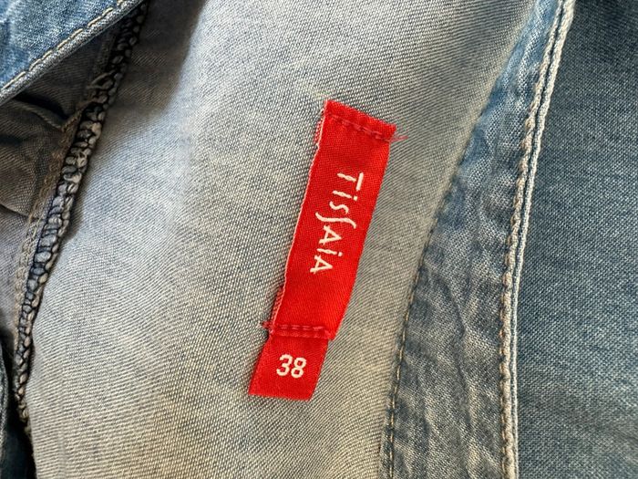 Robe - Excellent état - Taille 38 équivalent M - En jean denim - Marque Tissaia - Bleu délavé - Se ferme avec des pressions - Plus d’étiquette de matière