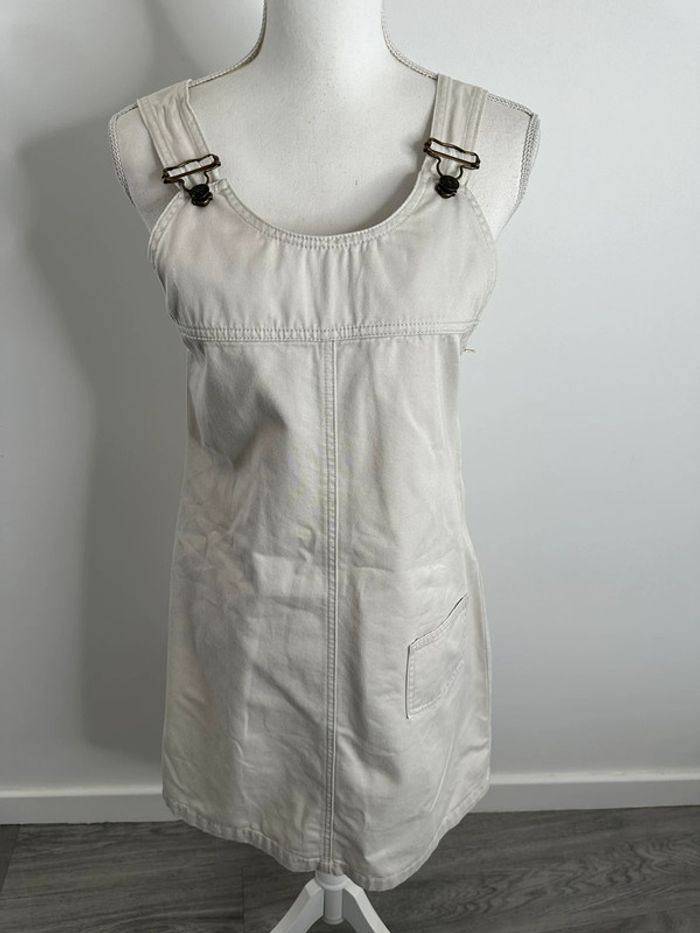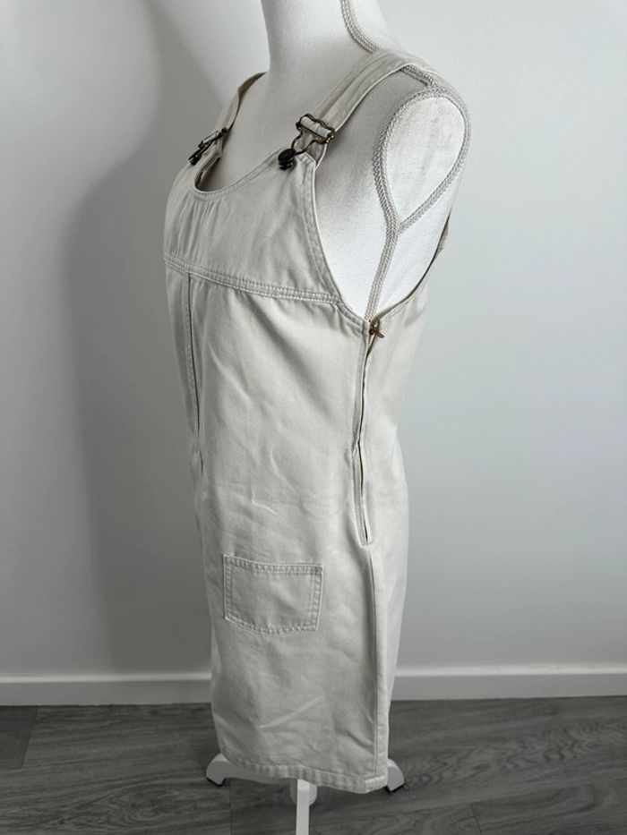 Salopette Robe - Excellent état - Taille 38 équivalent M - Couleur beige crème - Bretelles réglables - Une poche - 100% Coton - Vintage, années 80-90´ Dimensions: - 44cm niveau aisselle - 61cm de l’aisselle jusqu’en bas