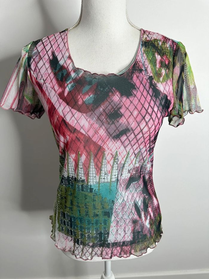 Top en mesh multicolore psychédélique Christine Laure T1 38 M - photo numéro 9