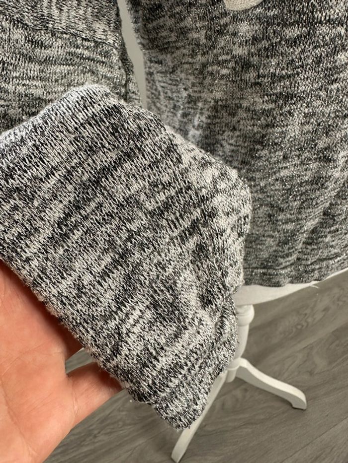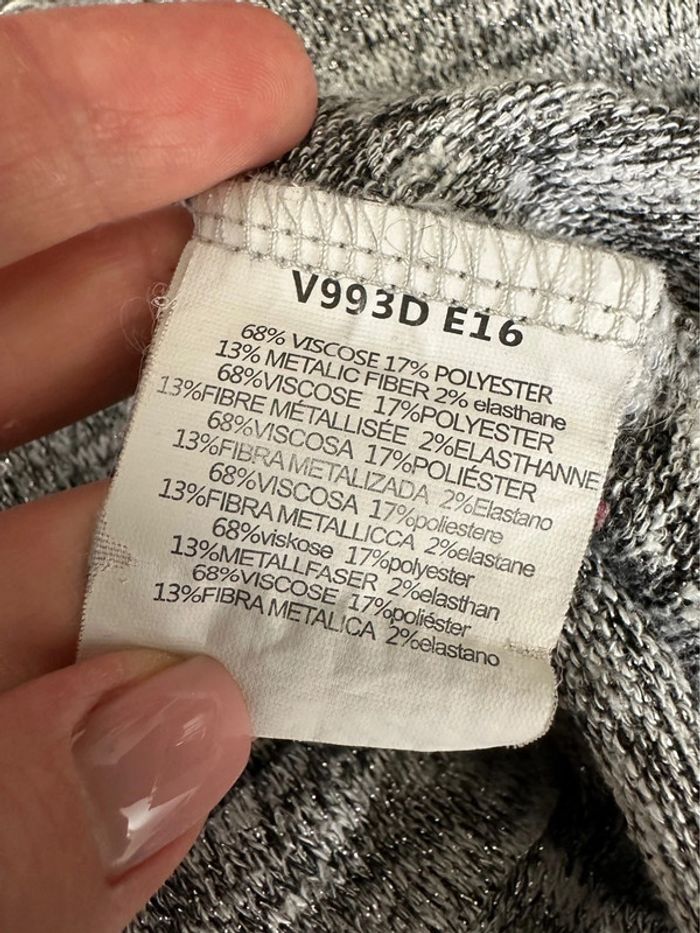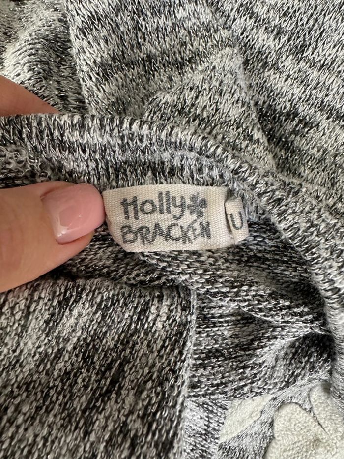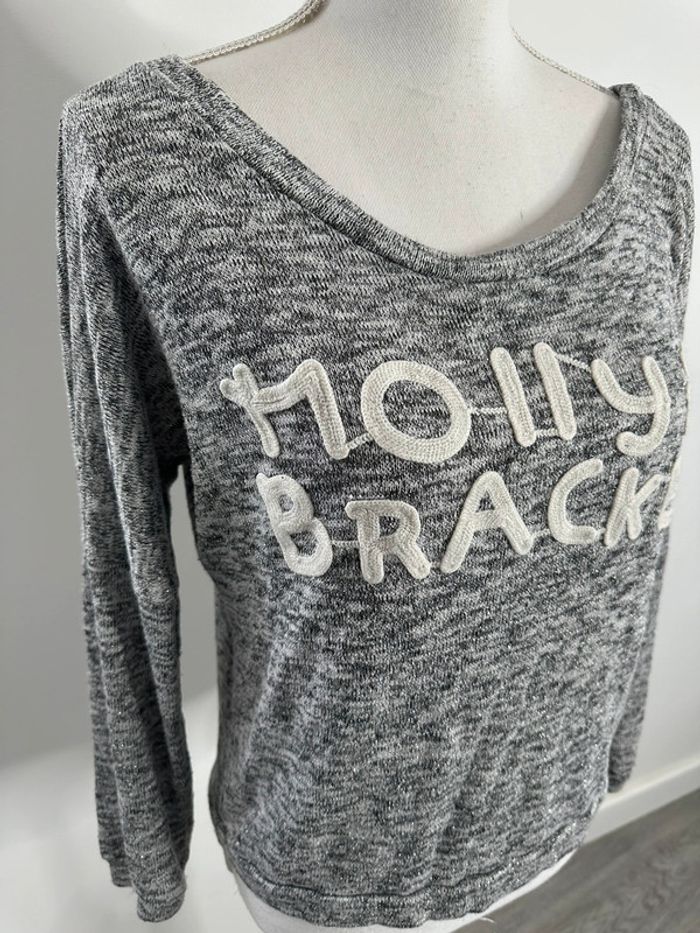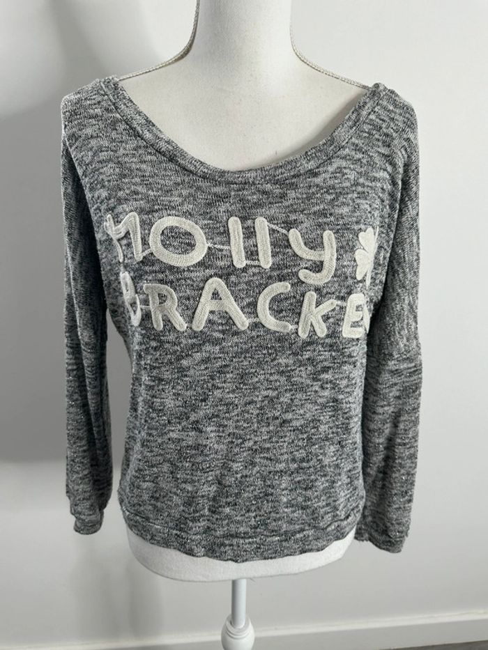Sweatshirt moucheté - Excellent état - Marque Molly Bracken - Taille unique, ok du 36 au 44 - Gris argenté et blanc - Broderie blanche Molly Bracken à l’avant - Viscose, polyester, fibre métallique et élastane