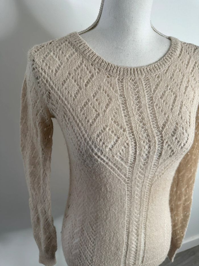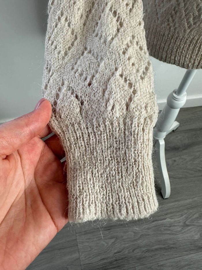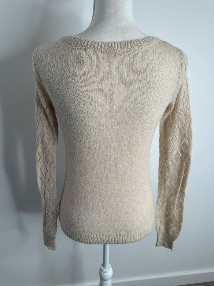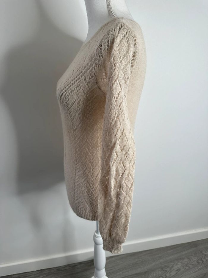 Pull en maille ajourée beige crème Vintage T38 M - photo numéro 3