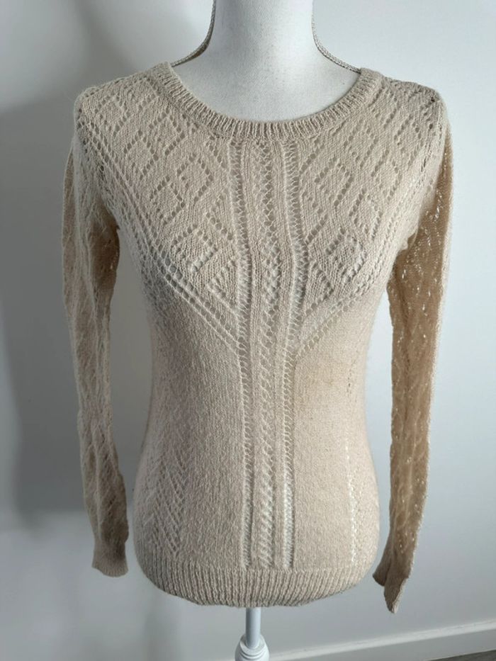 Pull en maille ajourée beige crème Vintage T38 M - photo numéro 2