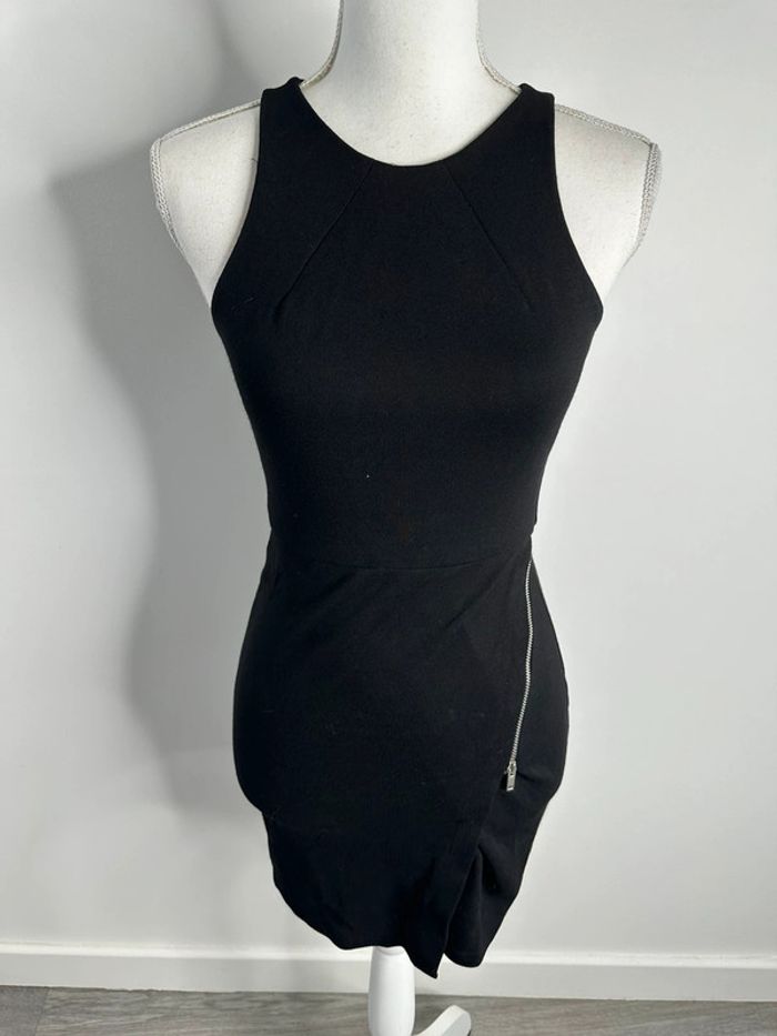 Petite robe noire - Excellent état - Taille 34 équivalent XS - Couleur noire - Coupe moulante - Long zip dans le dos - Zip argenté sur le bas - Plus d’étiquette de matière