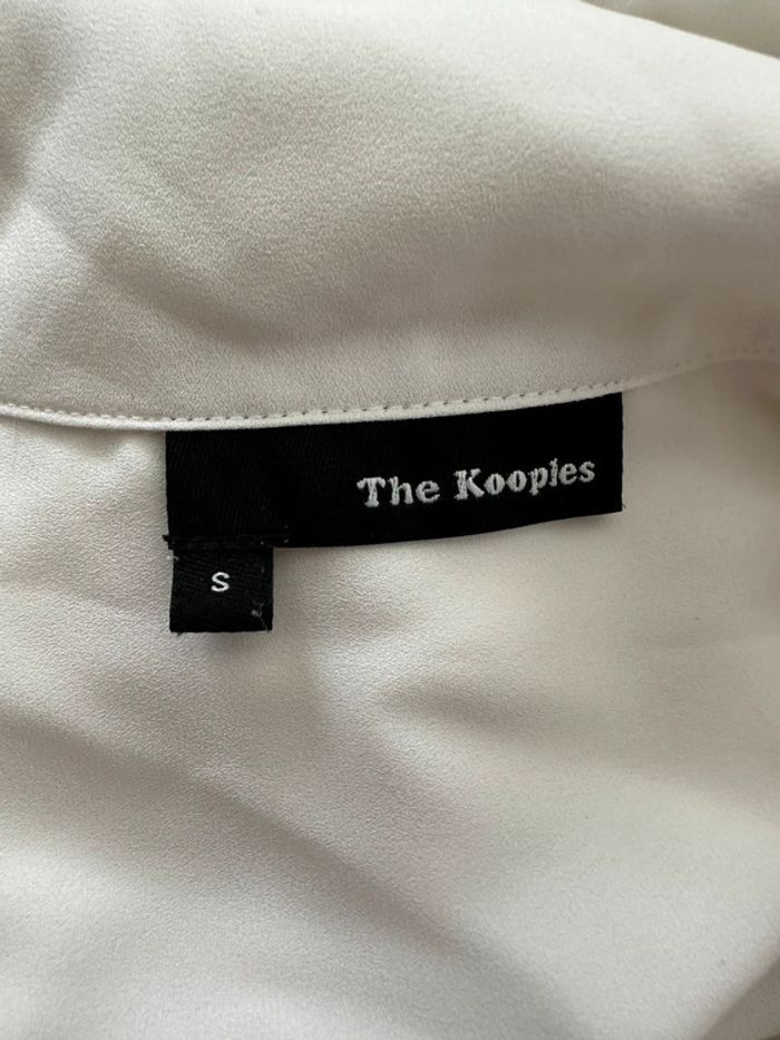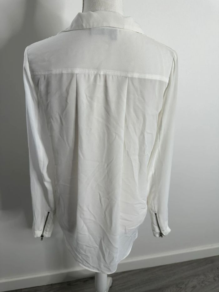 Chemisier perfecto - Excellent état - Taille 36 équivalent S - The Kooples - Blanc et argenté - À porter ouvert ou fermé - 100% Polyester
