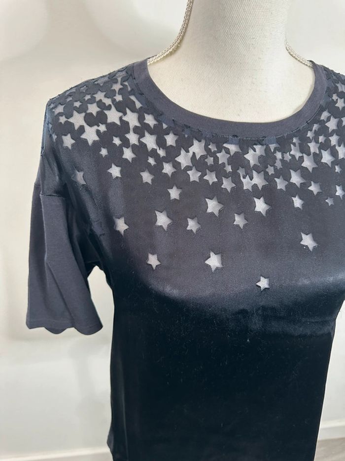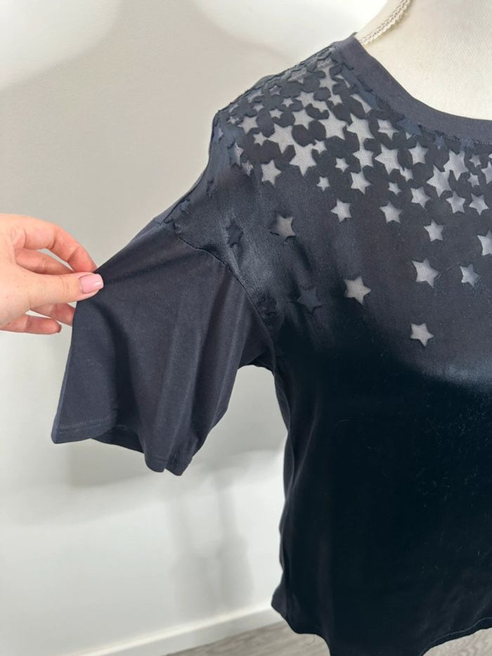 T-shirt en soie - Excellent état - Taille 36 équivalent S - Comptoir des Cotonniers - Manches courtes - Étoiles en transparence - Coton, modal, viscose et soie