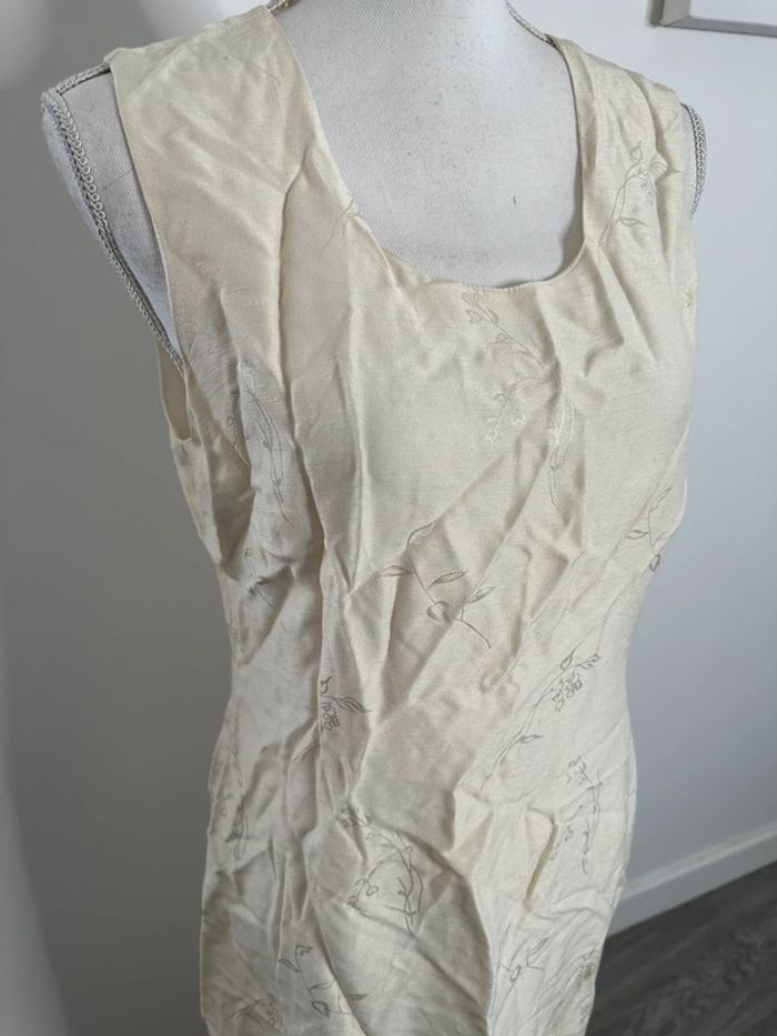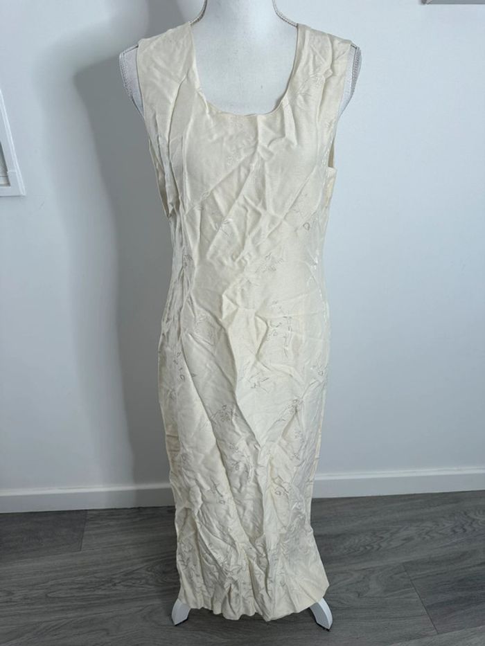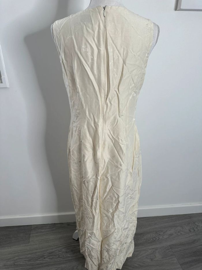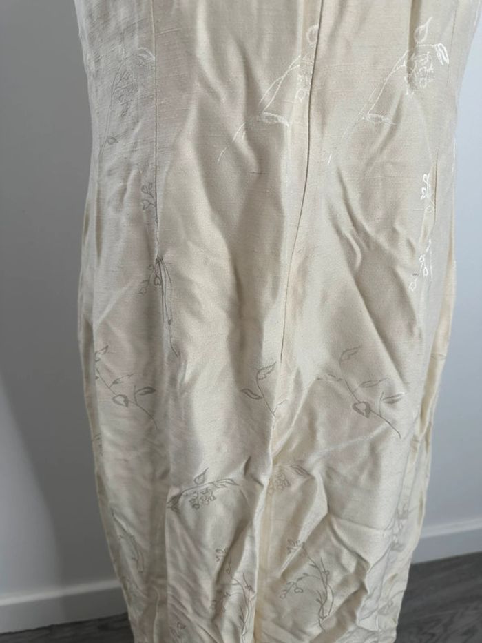 Robe longue - Excellent état - Taille 44 équivalent XXL - Beige crème - Fleurs brodées - Doublure intérieure - Marque Caroll Vintage - Fabrication Française 🇫🇷 - Zip dans le dos - Viscose et Acétate