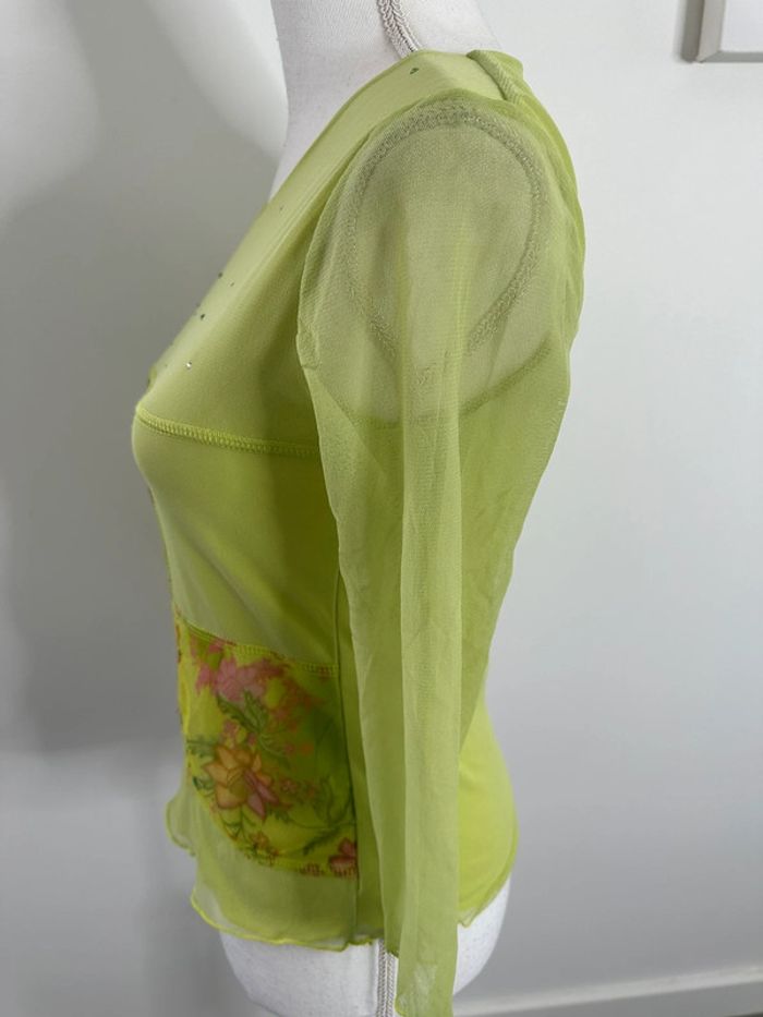 Top en mesh vert anis rose et argenté fleurs et strass 2YK Vintage T36 S - photo numéro 2