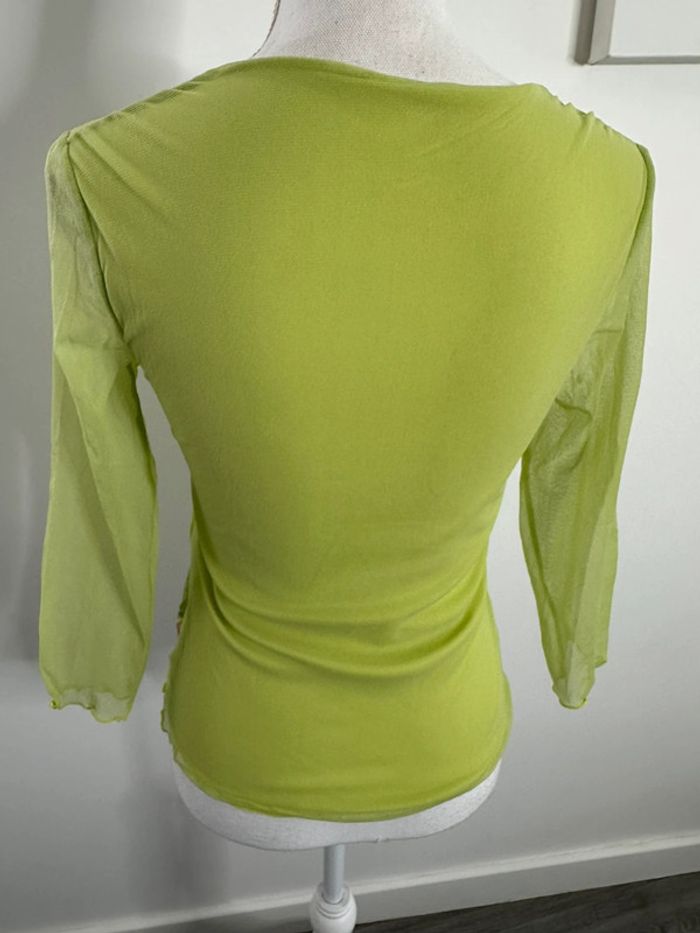 Top en mesh vert anis rose et argenté fleurs et strass 2YK Vintage T36 S - photo numéro 6
