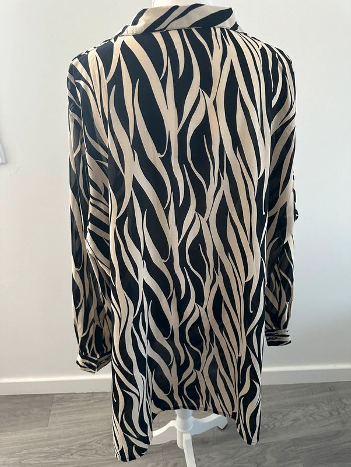 Robe chemise zèbre noire et beige crème Vintage T54/56 7XL/8XL - photo numéro 7