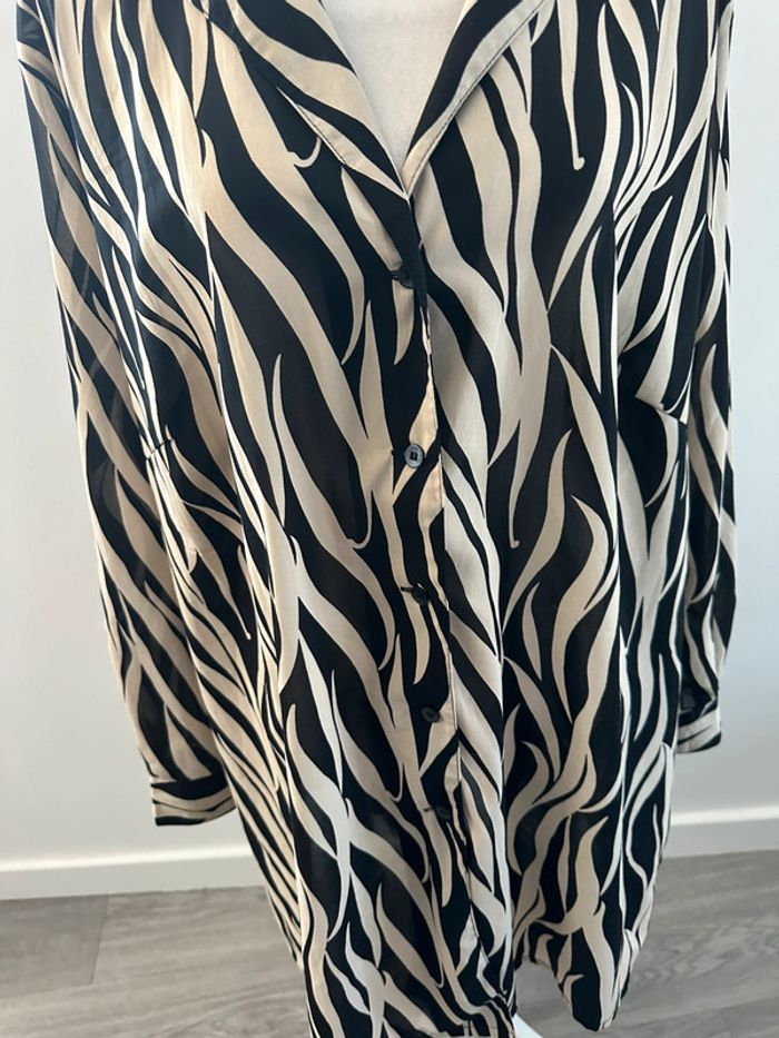 Robe chemise zèbre noire et beige crème Vintage T54/56 7XL/8XL - photo numéro 2