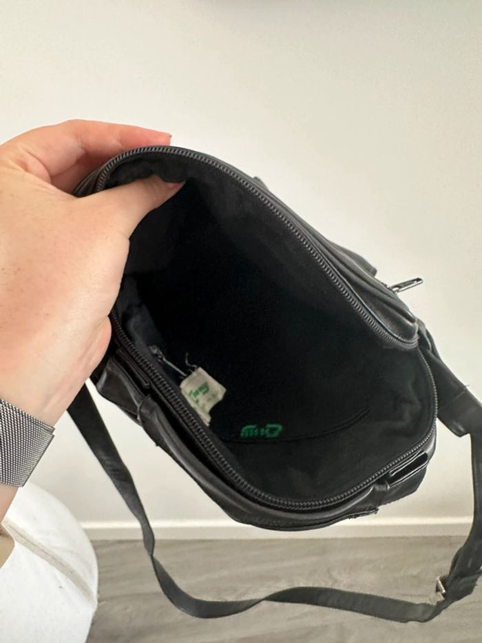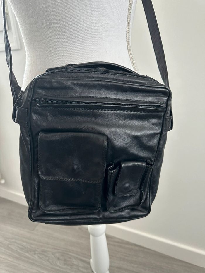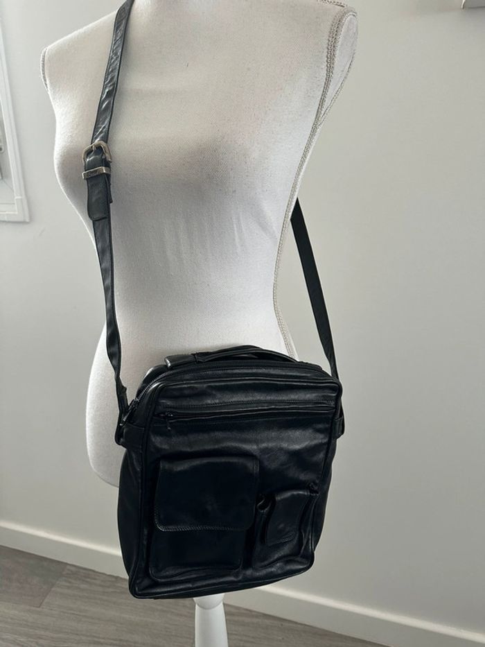 Sacoche bandoulière baise-en-ville - Excellent état - En cuir véritable - Bandoulière réglable - Couleur noire - Marque Emy - Fabrication italienne 🇮🇹 - Se ferme avec des pressions et zip - Plusieurs compartiments et poches - Doublure intérieure en tissus - Modèle unisexe - Vintage Dimensions: - 22cm de large - 24cm de haut - 5,5cm de profondeur