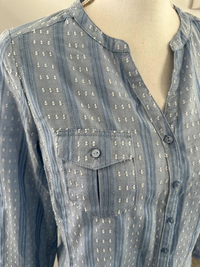 Chemisier plumetis pailleté bleu ciel et blanc T40 L